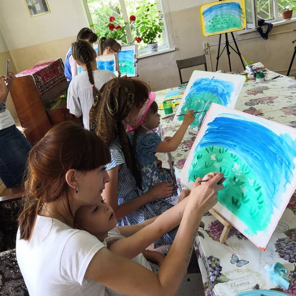 Эта встреча была организована социальным отделом храма Святителя Николая Чудотворца для детей на инвалидности и их родителей. Тематический рисунок, подготовленный приглашенным художником, особенно понравился детям, они рисовали дом и полянкой ромашек, как символ семейного очага. После мастер-класса, за душевным разговором состоялось чаепитие.