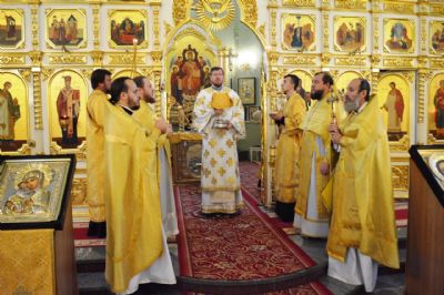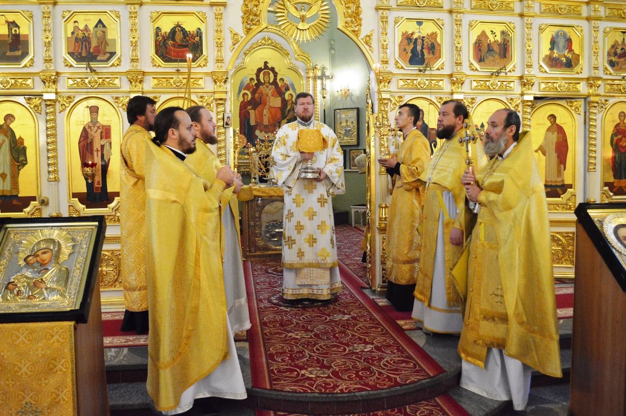 Его Высокопреосвященству сослужили: благочинный II Владивостокского благочиния Владивостокской епархии, ключарь собора иеромонах Иоанн (Костин), игумен Тихон (Иршенко), протоиерей Игорь Шевчук, иерей Владимир (Плотников).
