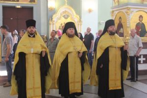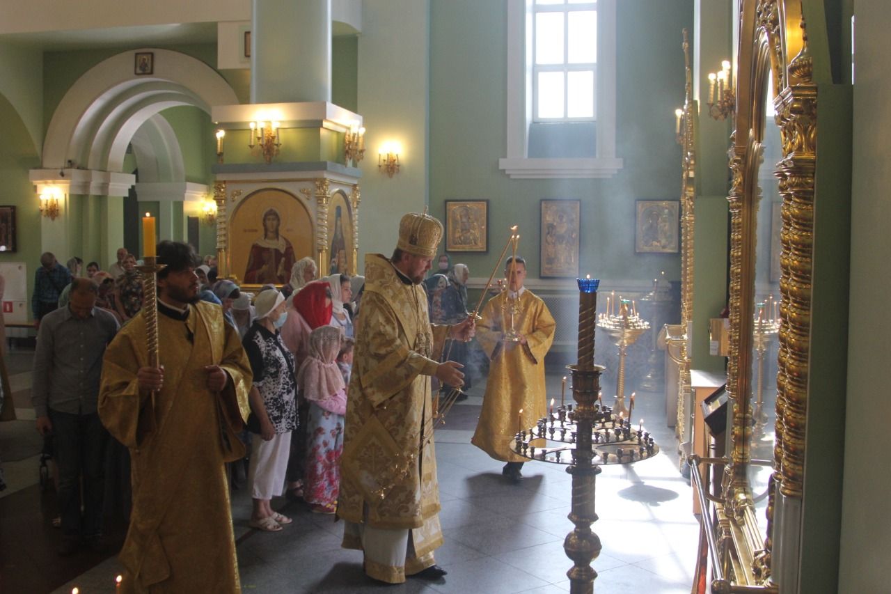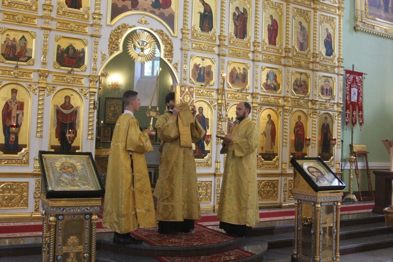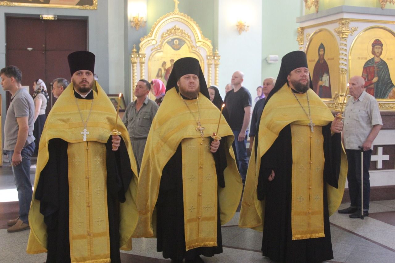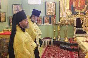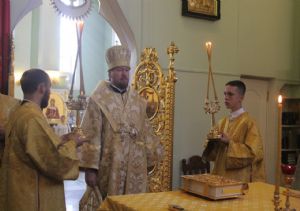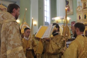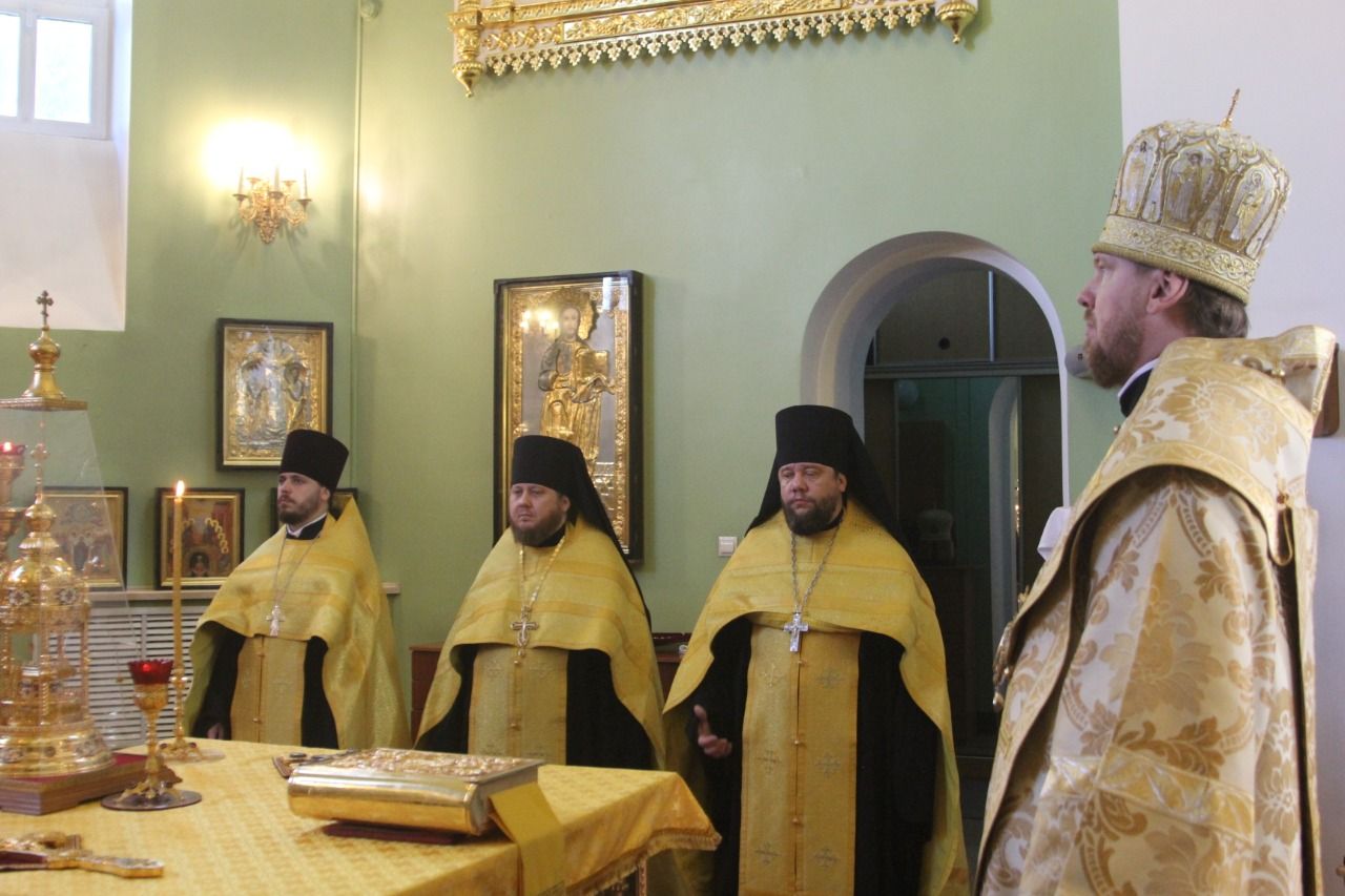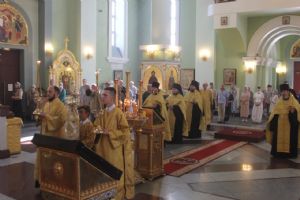 Его Высокопреосвященству сослужили: ключарь собора иеромонах Иоанн (Костин), игумен Антоний (Каменчук), игумен Тихон (Иршенко), протоиерей Игорь Шевчук, иерей Владимир Плотников.