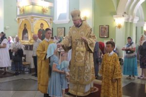 После чтения Святого Евангелия владыка Владимир совершил помазание верующих освященным елеем.