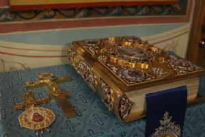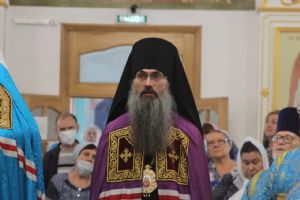 В завершение богослужения настоятель Успенского храма епископ Уссурийский Иннокентий от имени клира и прихожан поздравил митрополита Владимира с праздником, поблагодарил за совместную молитву и преподнес букет цветов.