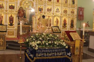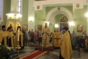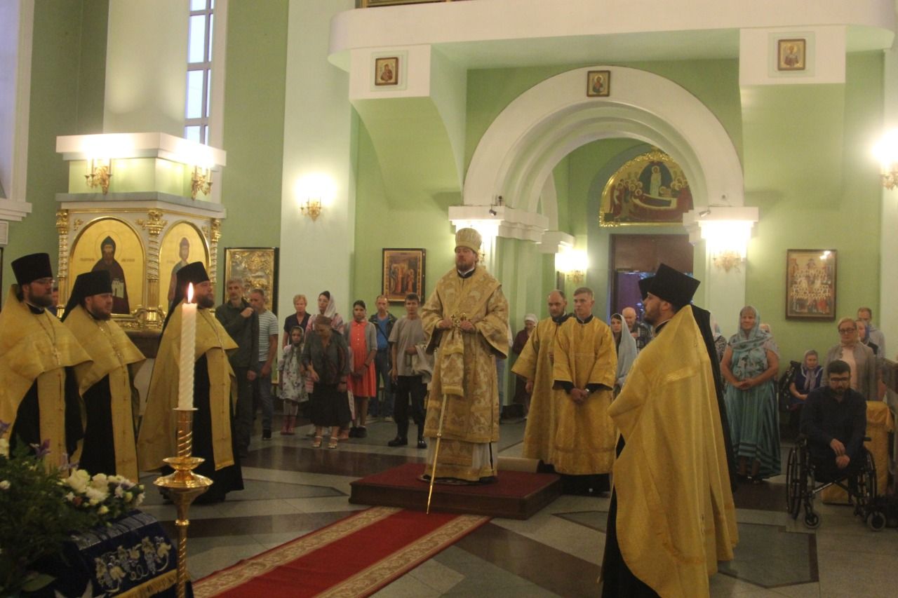 Его Высокопреосвященству сослужили: ключарь собора иеромонах Иоанн (Костин), игумен Антоний (Каменчук), игумен Тихон (Иршенко), протоиерей Игорь Шевчук, иерей Максим Точуков, иерей Владимир Плотников.