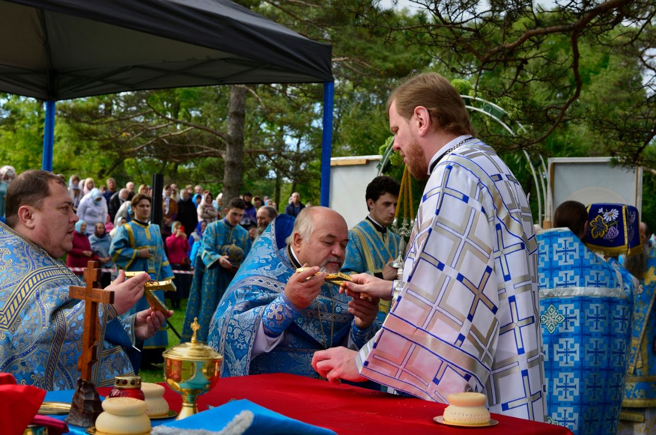 Богослужение возглавил митрополит Владивостокский и Приморский Владимир, которому сослужили митрополит Вениамин (Пушкарь), епископ Арсеньевский и Дальнегорский Гурий, епископ Уссурийский Иннокентий, викарий Владивостокской епархии, а также духовенство митрополии: благочинный монастырей Владивостокской епархии настоятель Свято-Серафимовского мужского монастыря игумен Климент (Кривоносов), благочинный I Владивостокского благочиния протоиерей Сергий Шуталев, благочинный II Владивостокского благочиния иеромонах Иоанн (Костин), благочинный II и IV округов Владивостокской епархии протоиерей Андрей Машанов, благочинный III округа протоиерей Евгений Маляр, благочинный VI округа протоиерей Владимир Капитанюк и другие священнослужители.