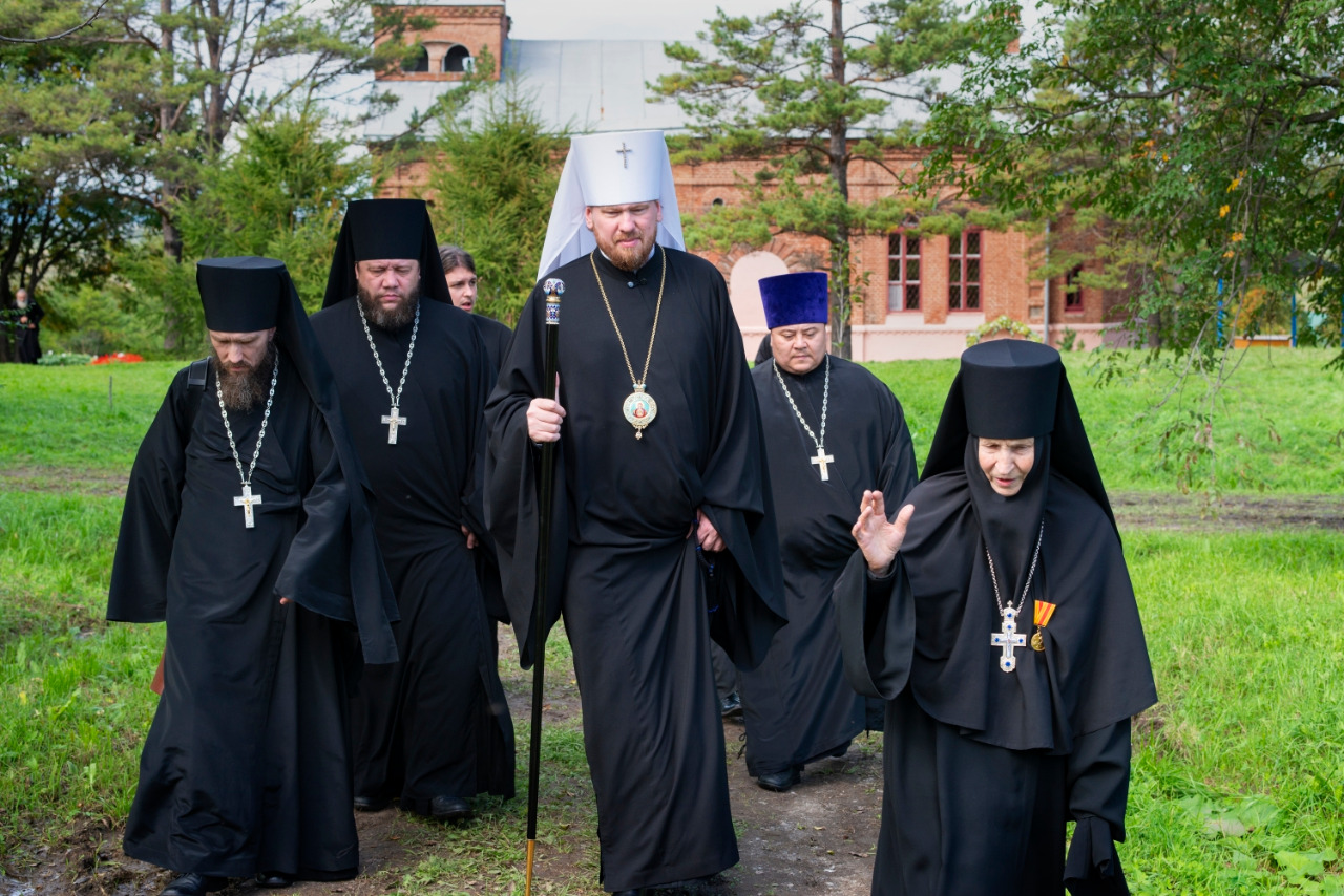 Владыку сопровождали настоятельница Богородице-Рождественского женского монастыря игумения Варвара (Волгина), благочинный монастырей Владивостокской епархии настоятель Свято-Серафимовского мужского монастыря игумен Климент (Кривоносов), благочинный I Владивостокского благочиния протоиерей Сергий Шуталев, благочинный II Владивостокского благочиния иеромонах Иоанн (Костин).