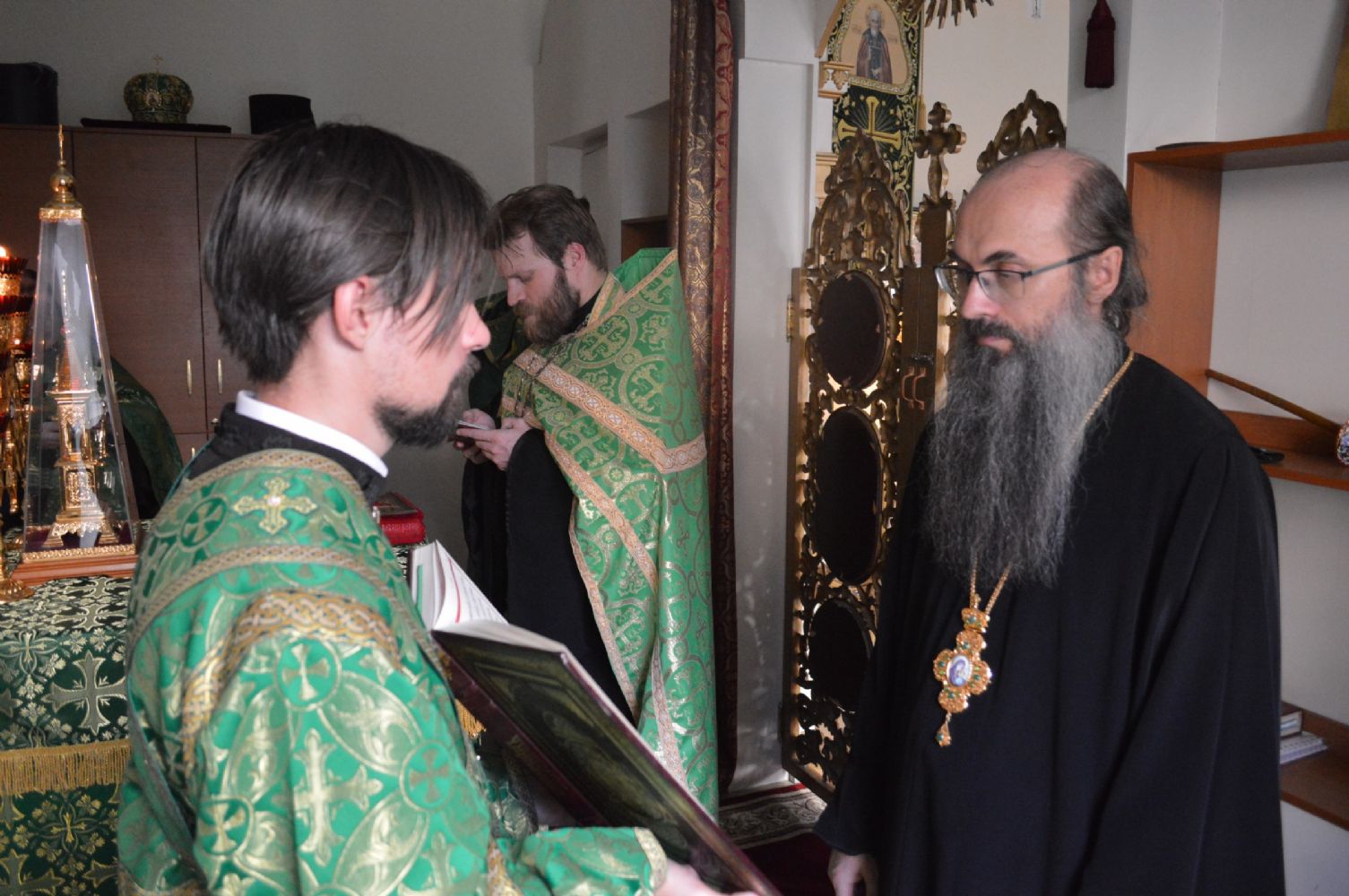 Его Преосвященству сослужили: благочинный I Владивостокского благочиния Владивостокской епархии протоиерей Сергий Шуталев, настоятель храма иеромонах Марк (Корнилов), иерей Дионисий Гордеев.