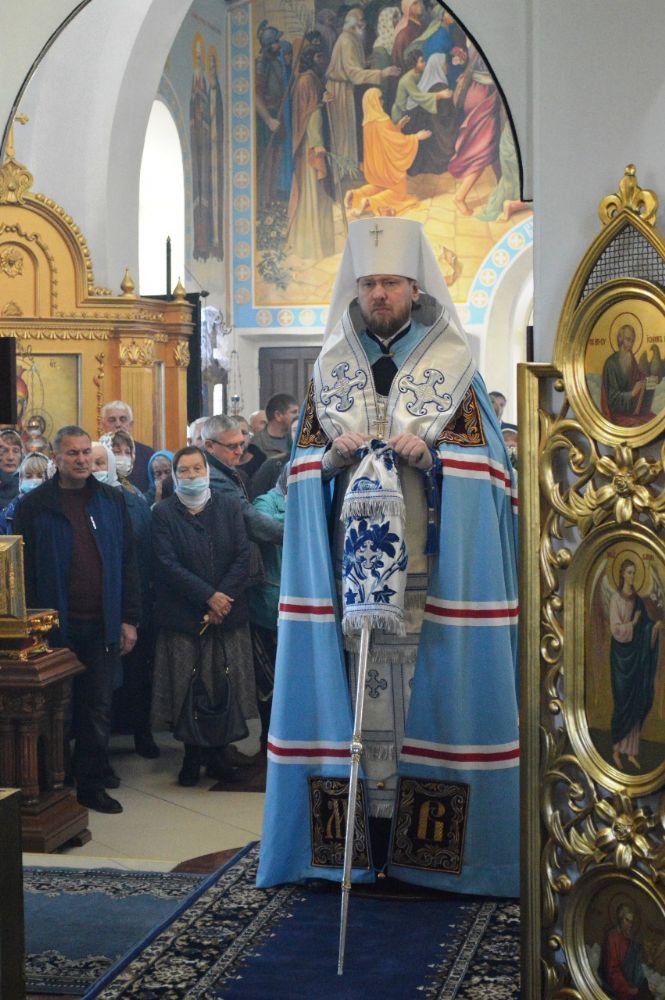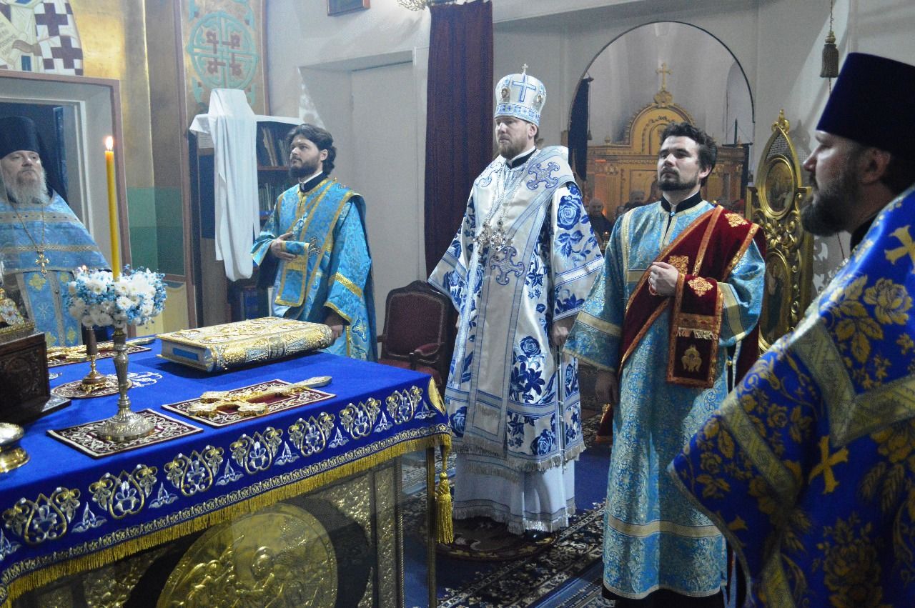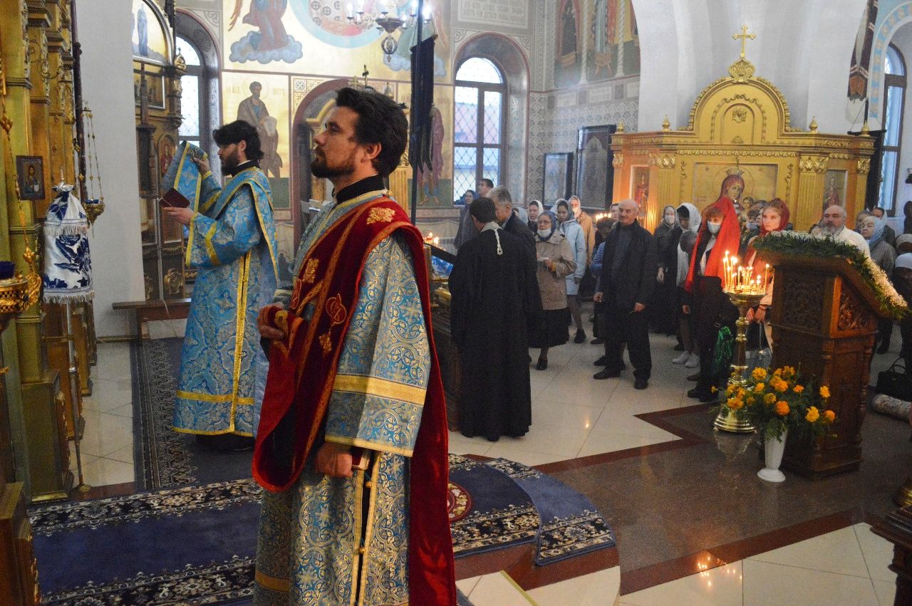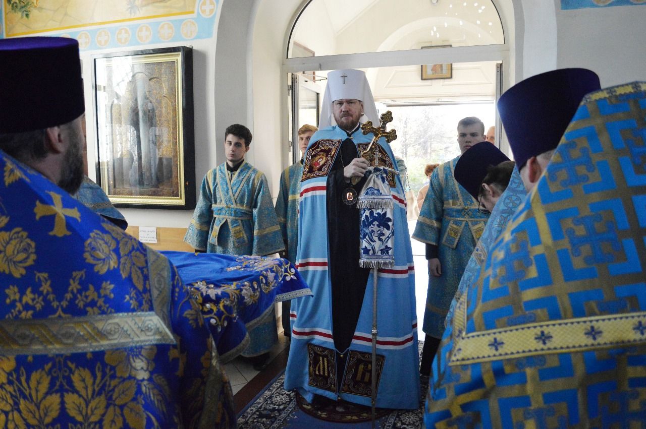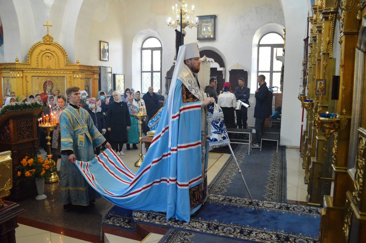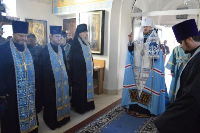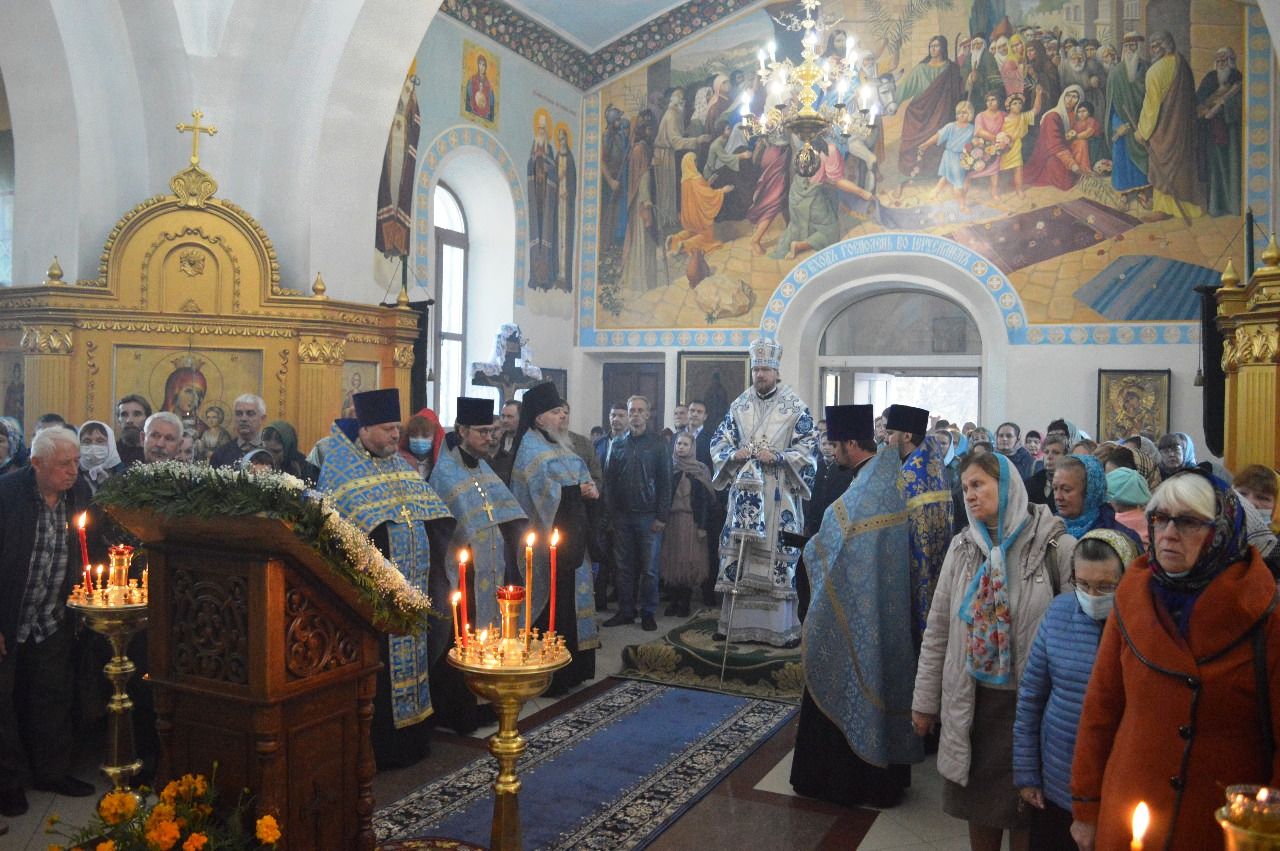 Его Высокопреосвященству сослужили настоятель храма Покрова Божией Матери протоиерей Сергий Якутов, игумен Феофан (Зиборов), иерей Павел Моисеев, иерей Сергий Качев, иерей Владимир Григорьев.