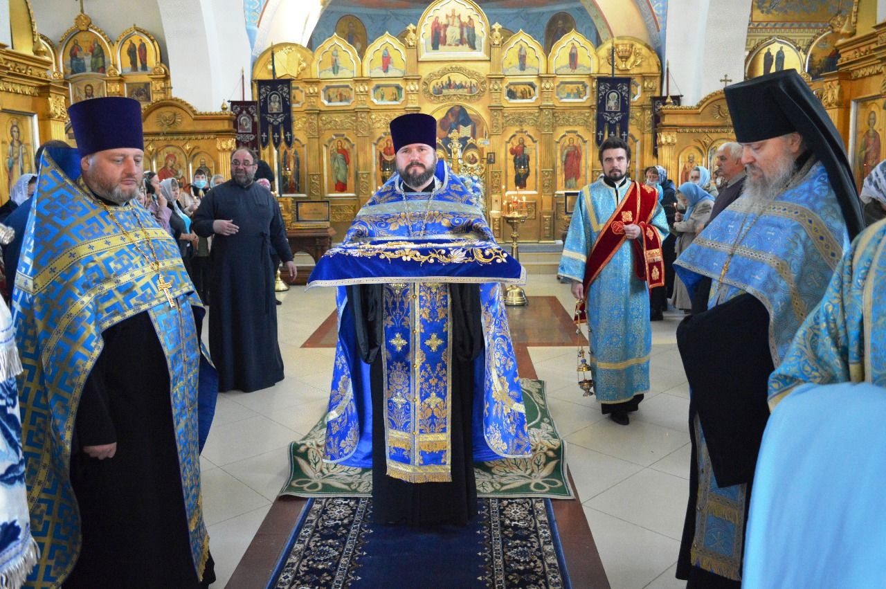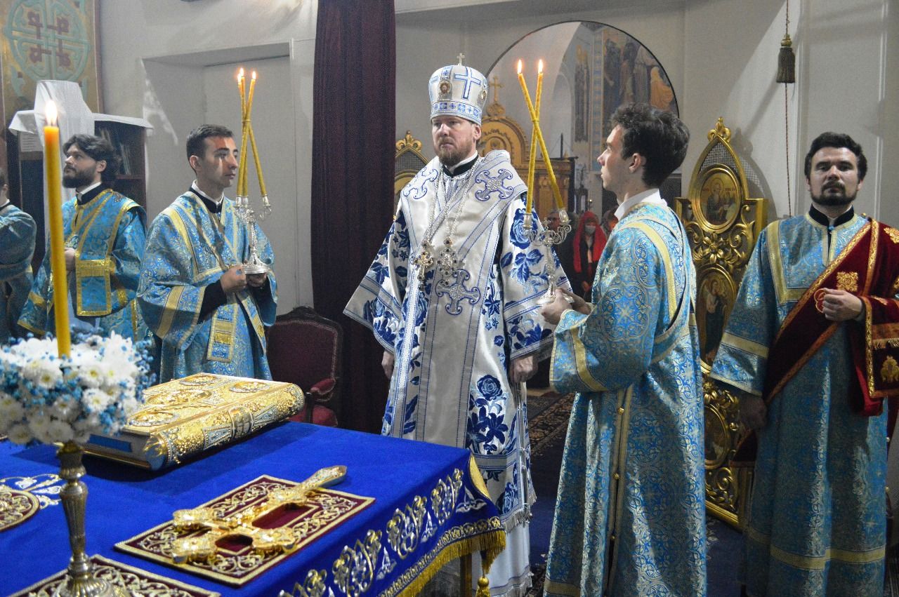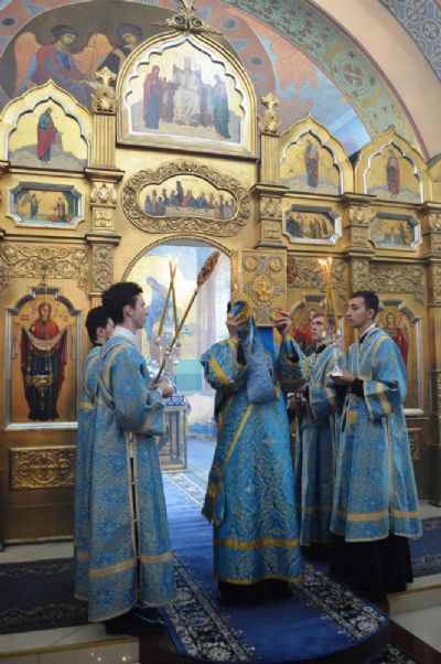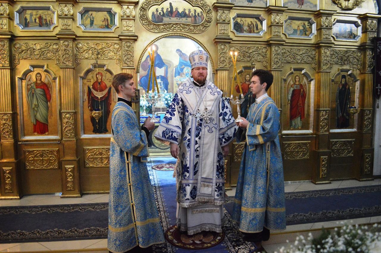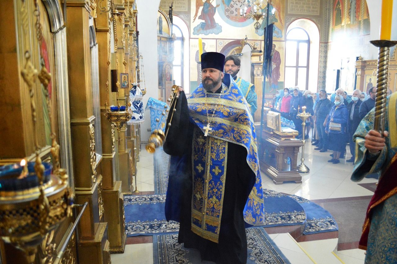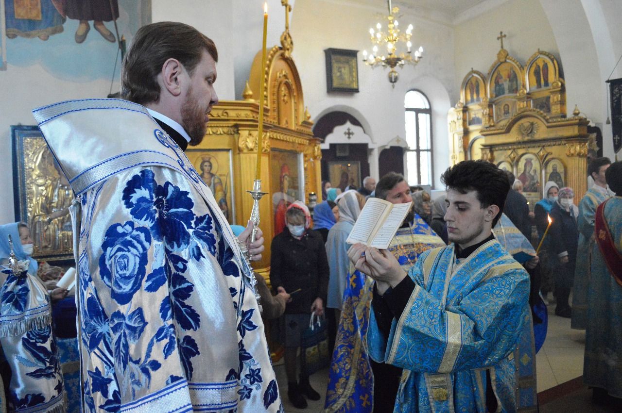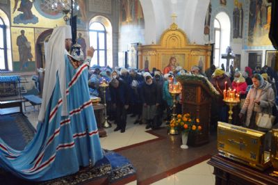 Его Высокопреосвященству сослужили настоятель храма Покрова Божией Матери протоиерей Сергий Якутов, игумен Феофан (Зиборов), иерей Павел Моисеев, иерей Сергий Качев, иерей Владимир Григорьев.