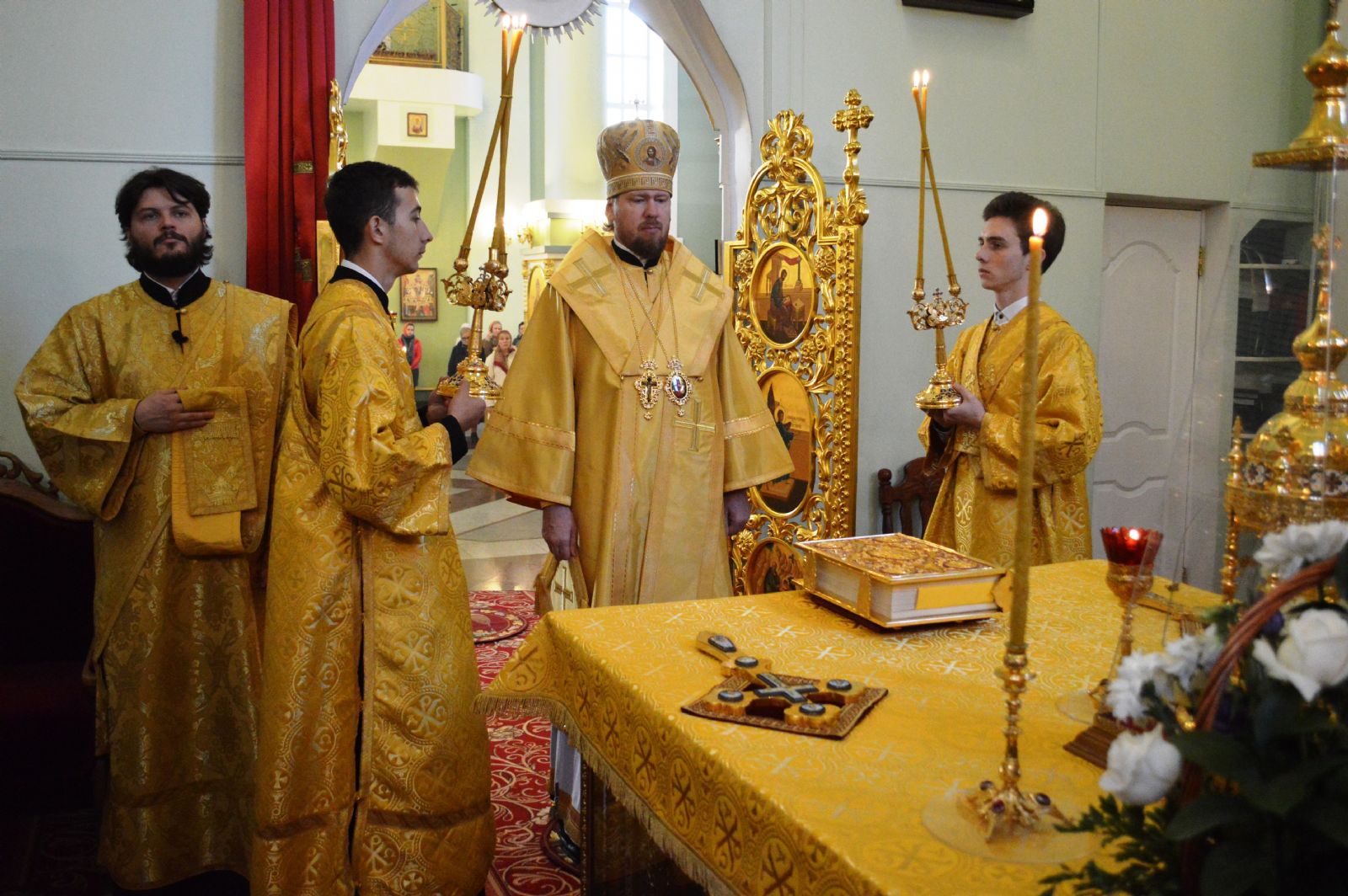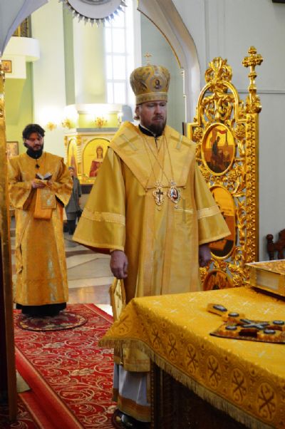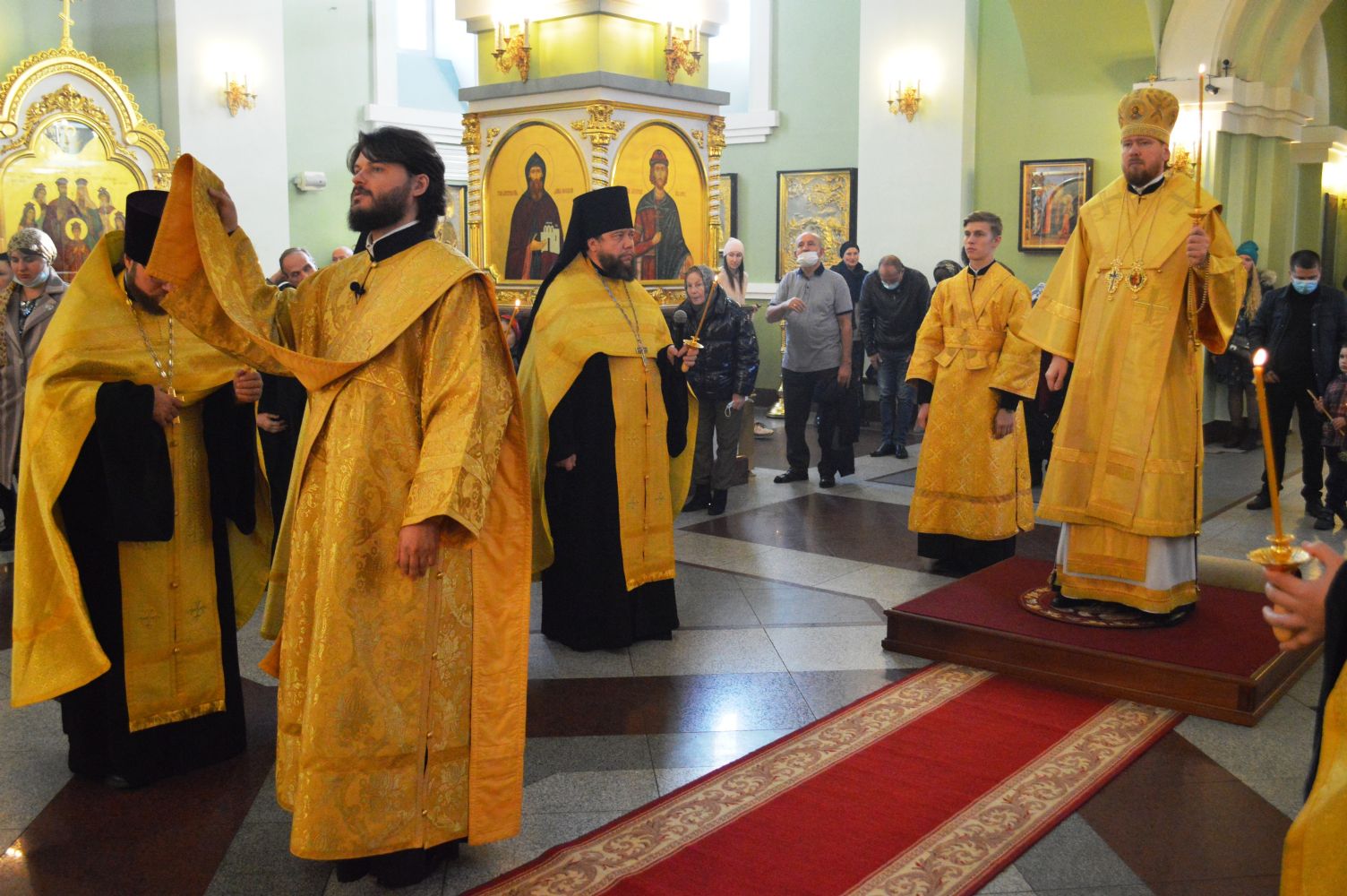 Его Высокопреосвященству сослужили: ключарь собора иеромонах Иоанн (Костин), игумен Антоний (Каменчук), игумен Тихон (Иршенко), протоиерей Игорь Шевчук, иерей Максим Точуков, иерей Владимир Плотников.