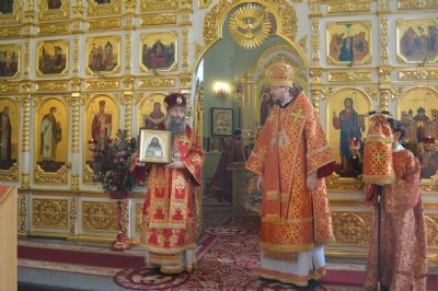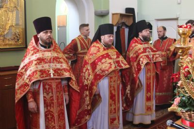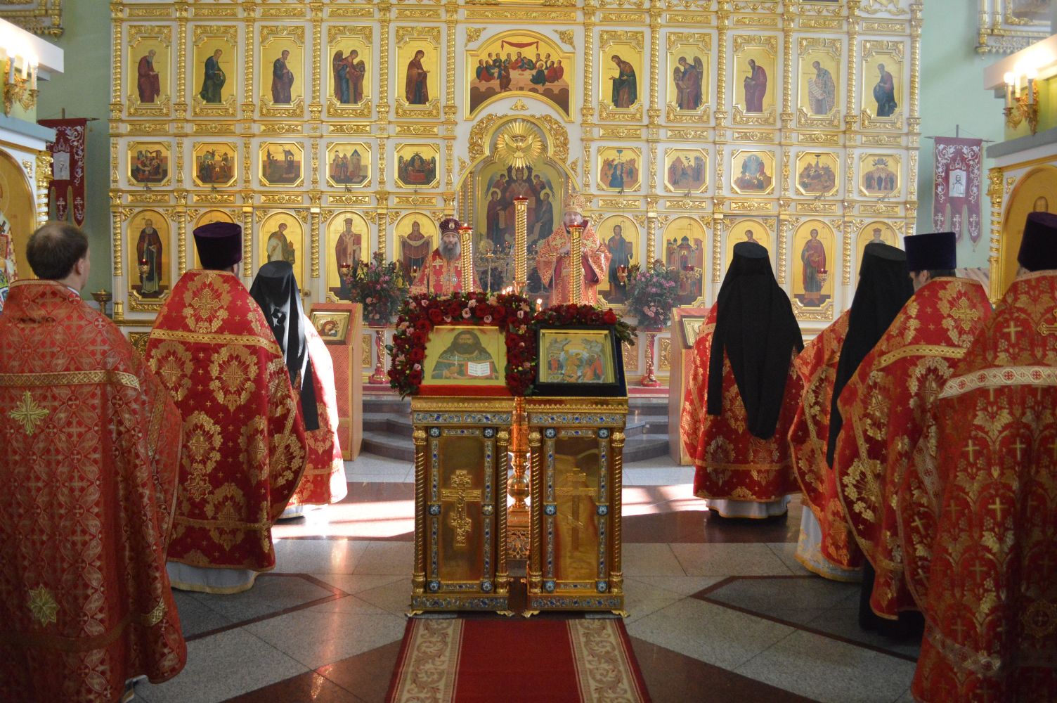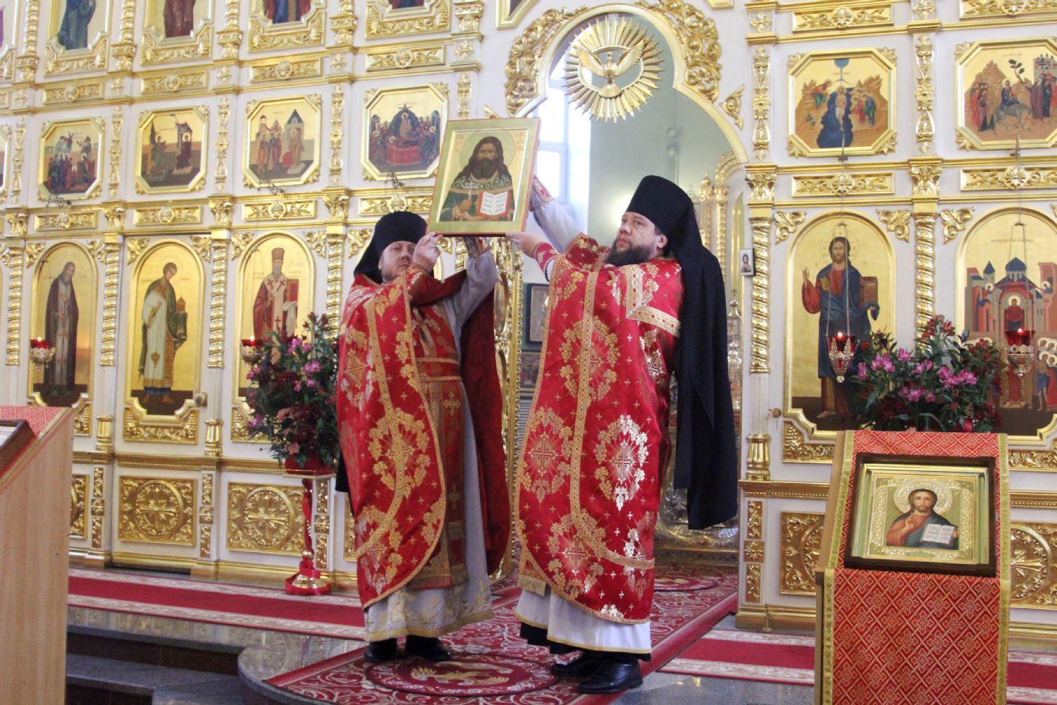 Из алтаря была изнесена впервые написанная икона священномученика Павла. Хор исполнил тропарь, кондак и величание священномученику Павлу.