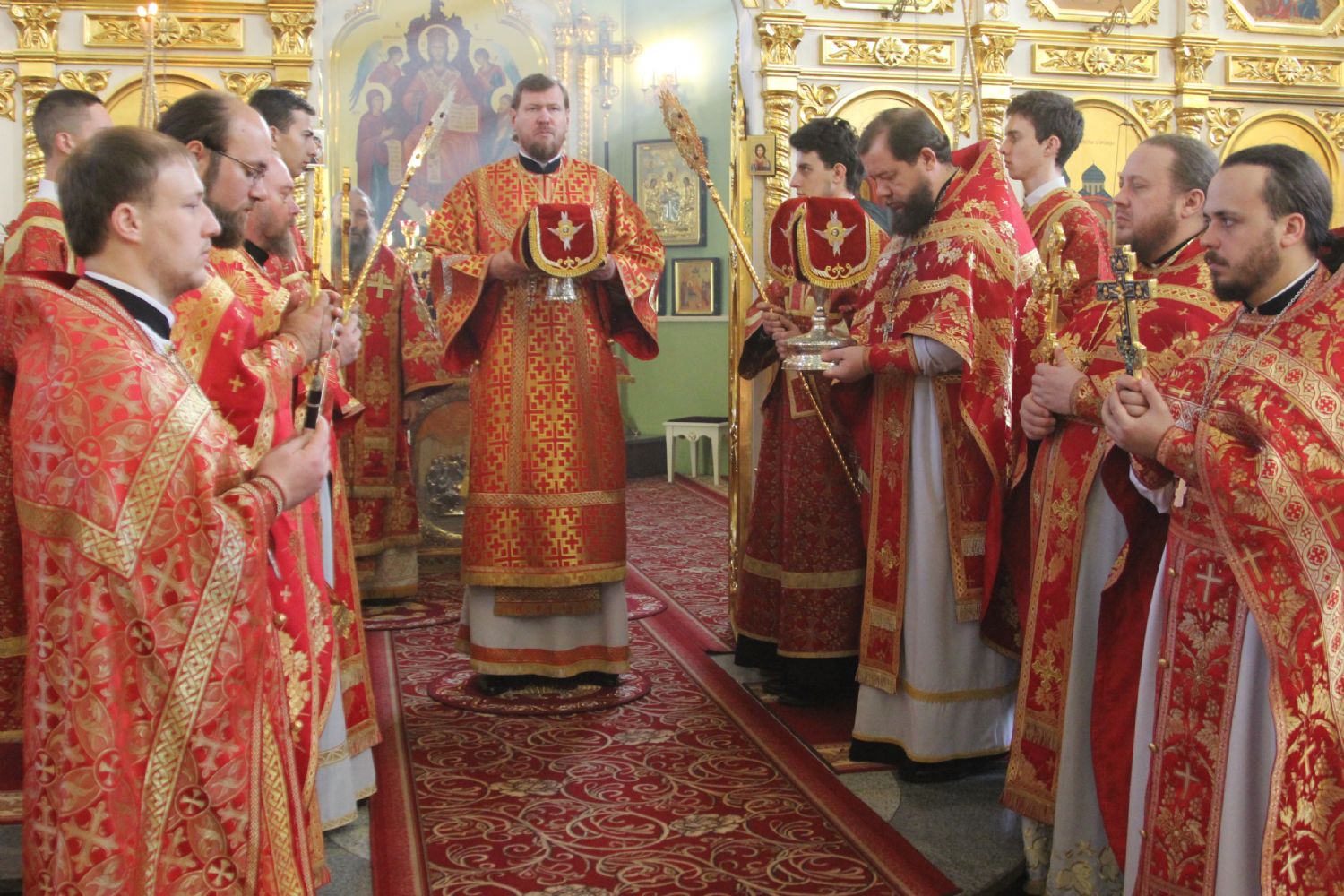 Архипастырям сослужили: благочинный II Владивостокского благочиния, ключарь собора иеромонах Иоанн (Костин), игумен Антоний (Каменчук), игумен Тихон (Иршенко), протоиерей Игорь Шевчук, иерей Максим Точуков, иерей Владимир Плотников, клирик Арсеньевской епархии иерей Николай Колесников.