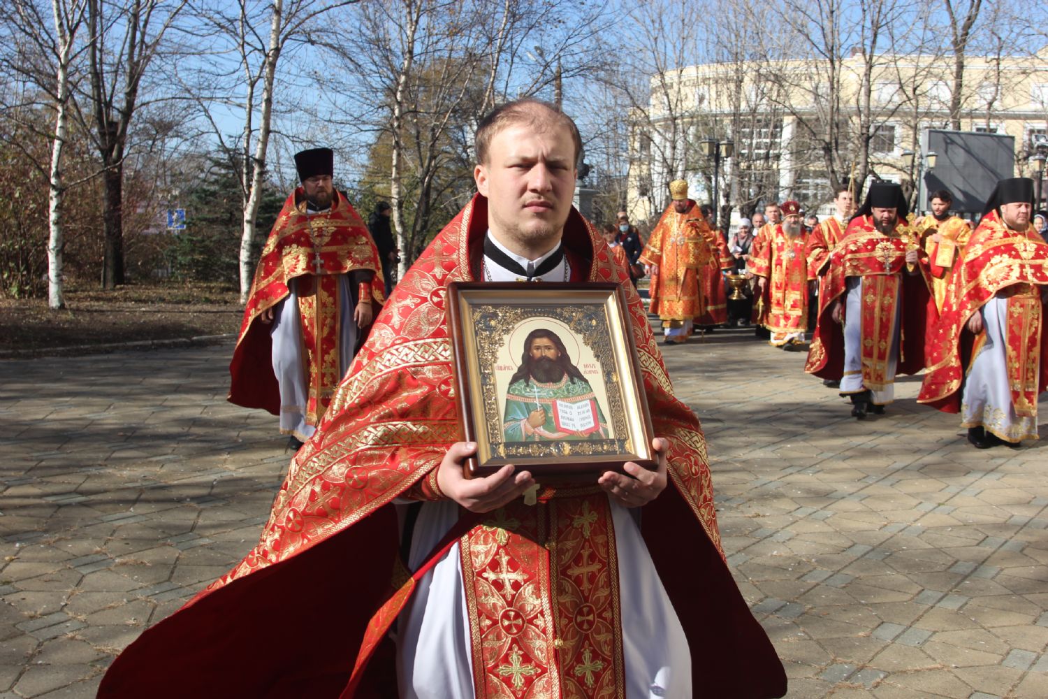 После сугубой ектении были вознесены молитва ко Господу о завершении строительства Спасо-Преображенского кафедрального собора г. Владивостока и молитва во время распространения вредоносного поветрия чтомая.