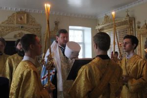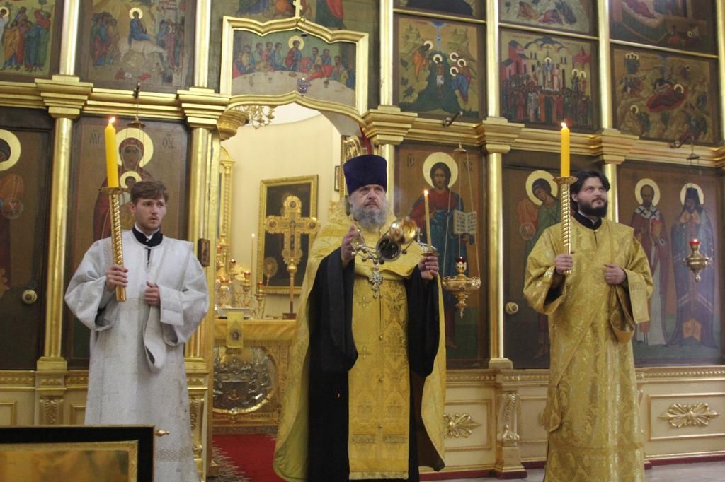 Его Высокопреосвященству сослужили благочинный II Владивостокского благочиния иеромонах Иоанн (Костин), ключарь собора протоиерей Александр Талько.