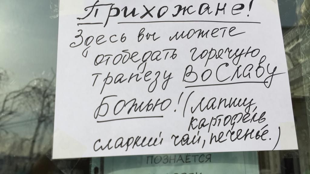 На приходе организовано горячее питание для всех, кто обращается за помощью.