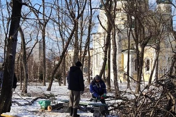 Владивосток. 29 ноября 2020 года, по окончании Божественной литургии активные прихожане Покровского собора поучаствовали в уборке территории Покровского парка.