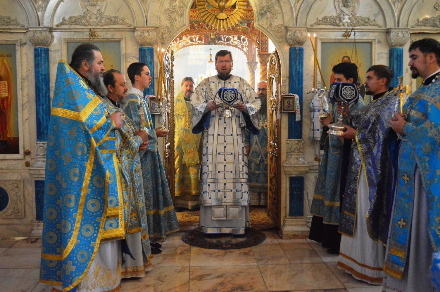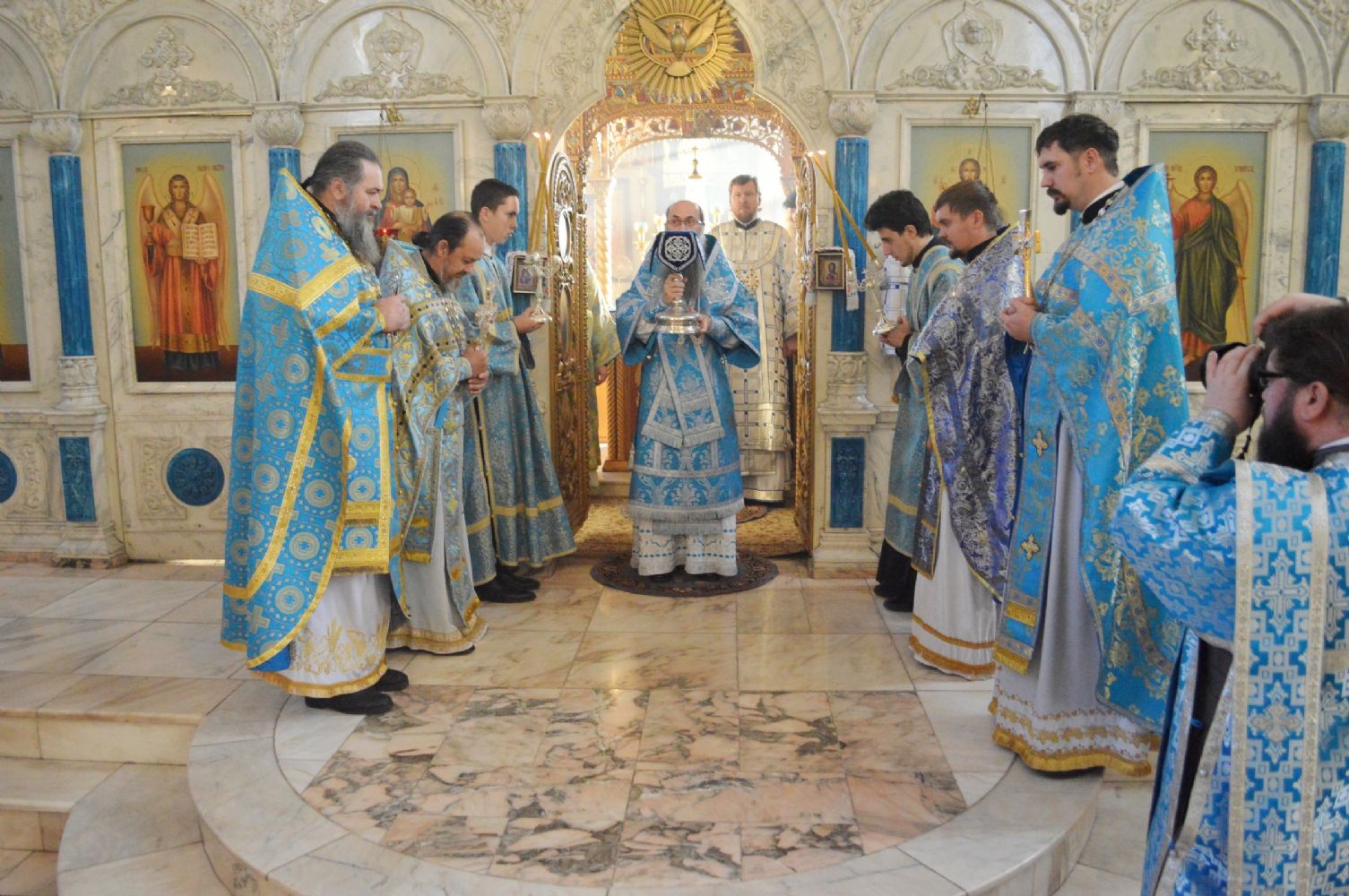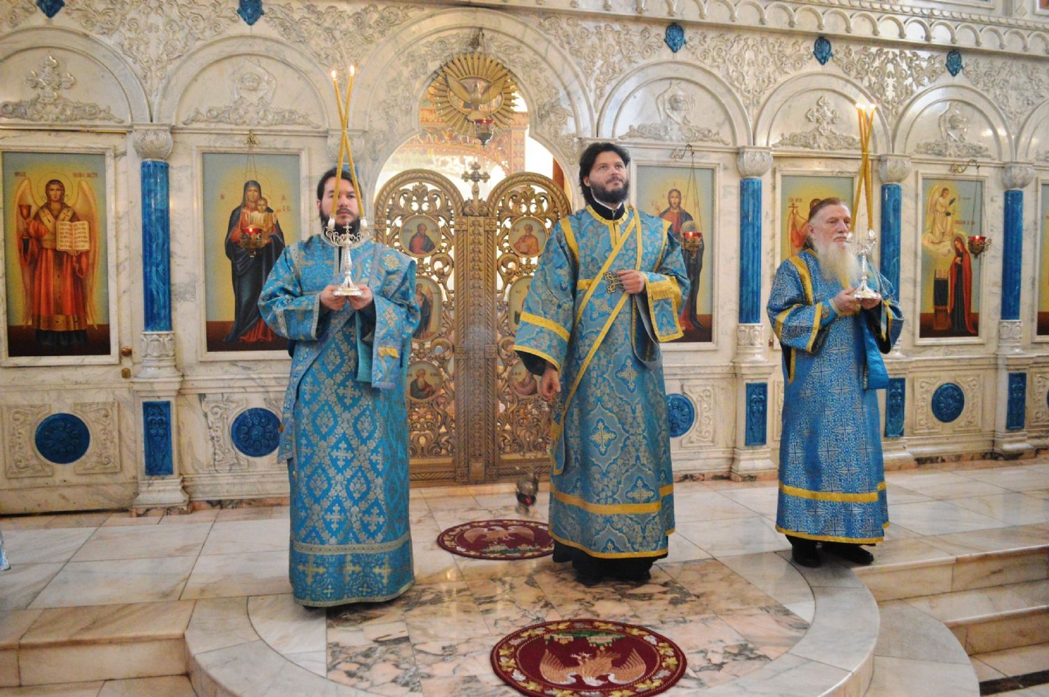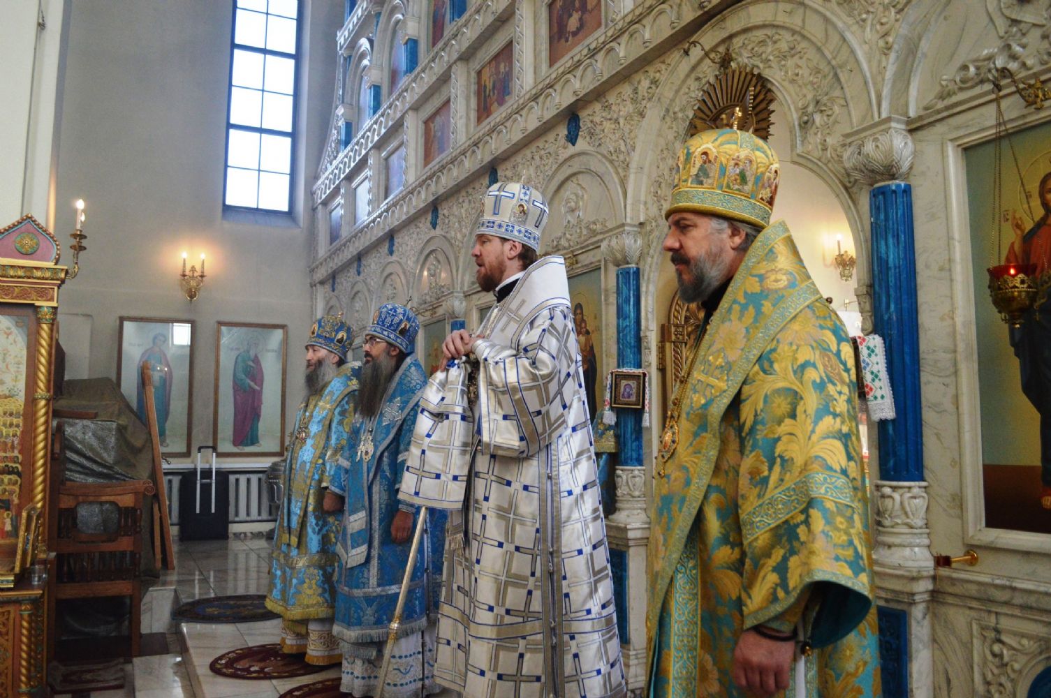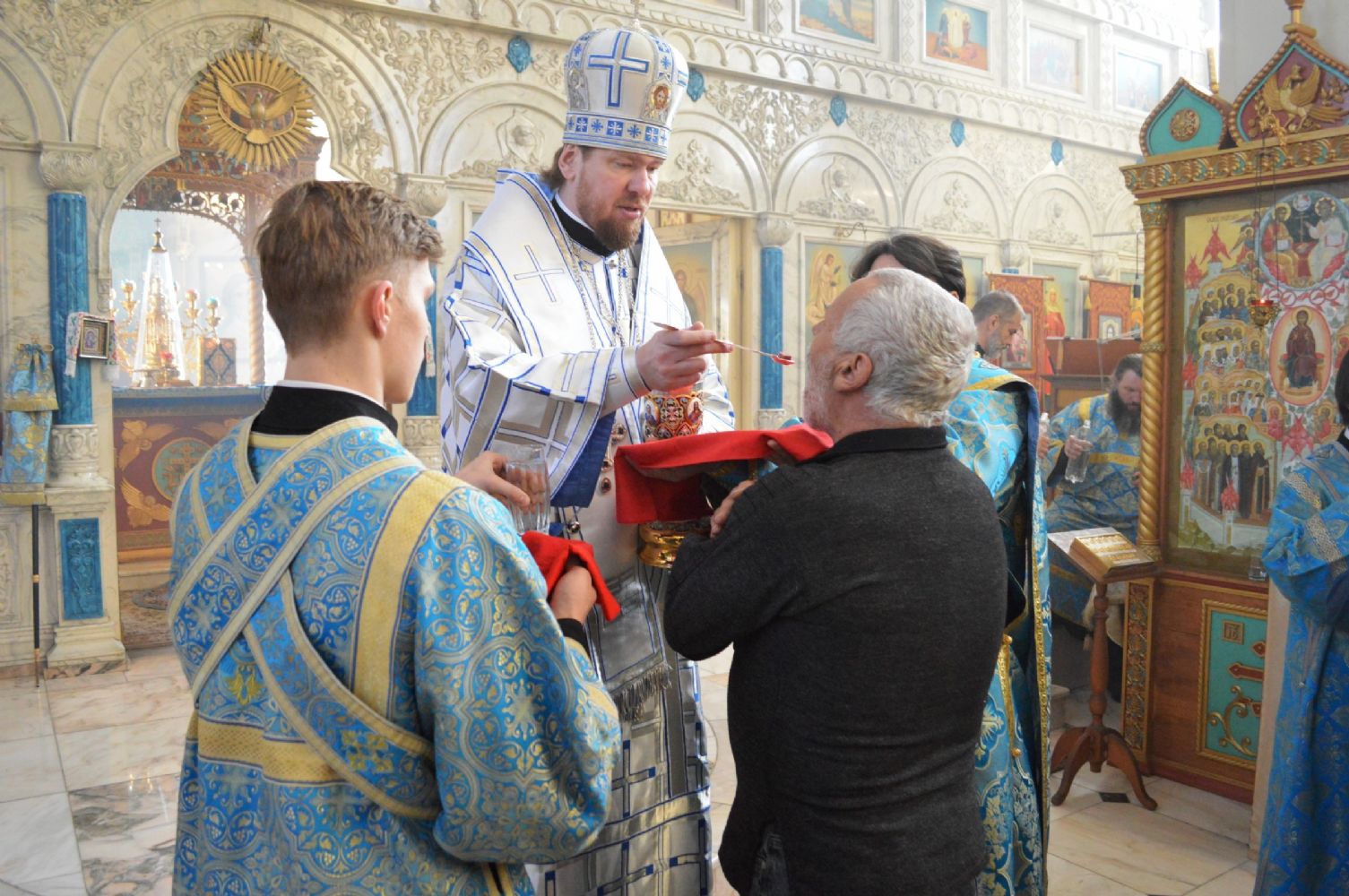 Архиереям сослужили ключарь собора иерей Александр Ступа, протоиерей Николай Хоменко, иерей Димитрий Овчинников, иерей Андрей Васякин, иеромонах Варсонофий (Рыжов), иерей Михаил Котенко, иерей Владимир Пыжиков.