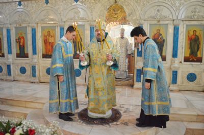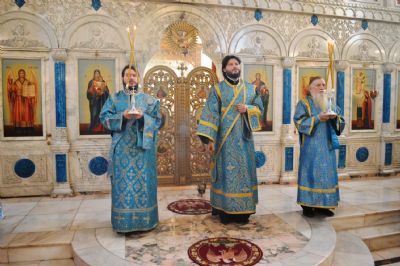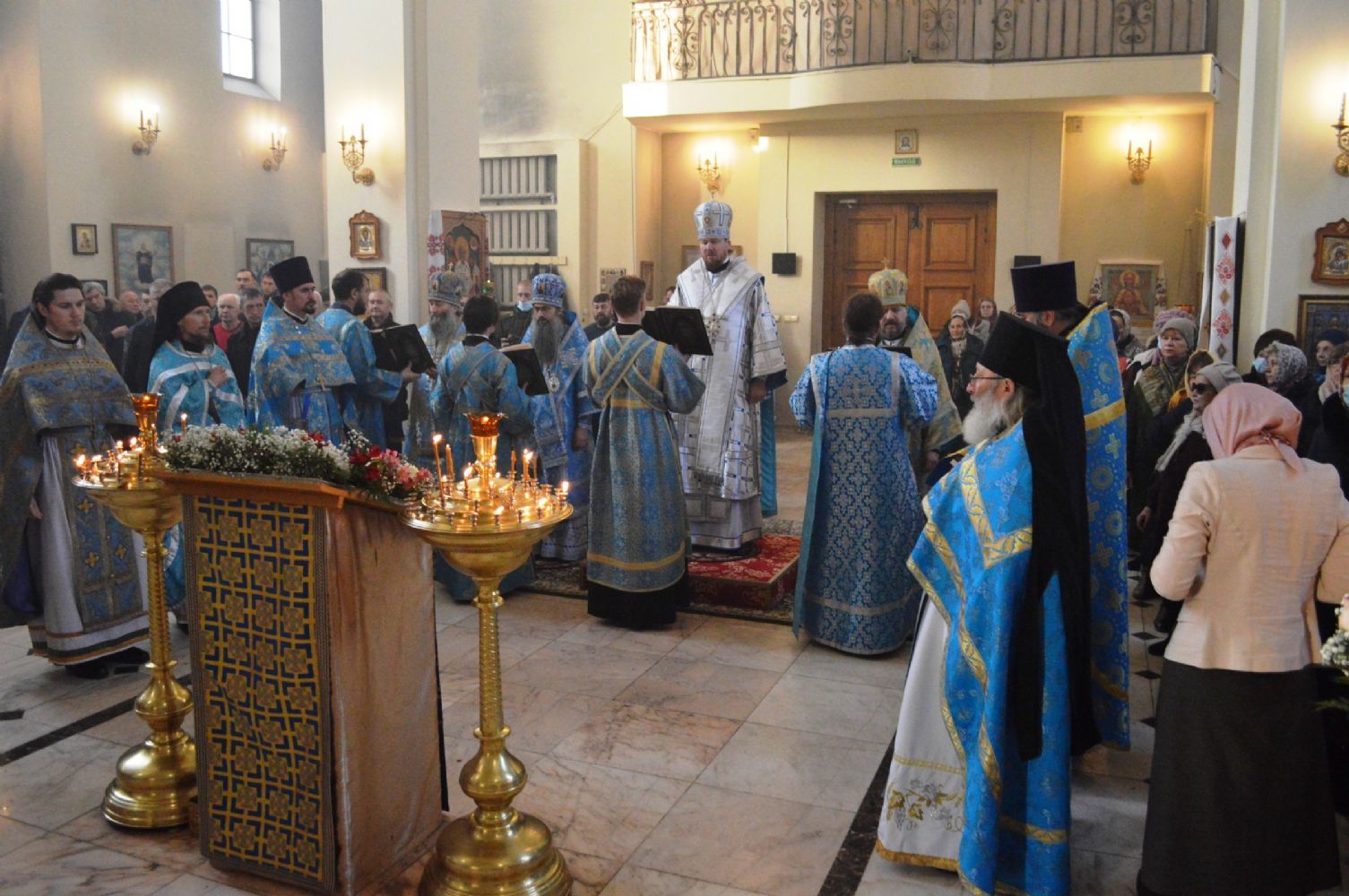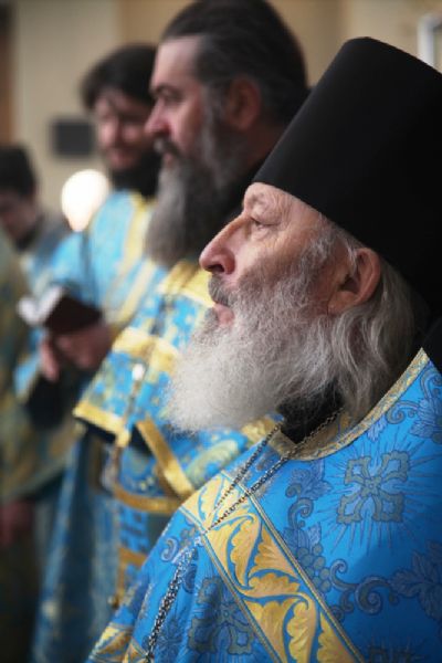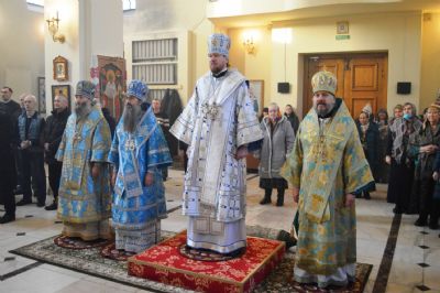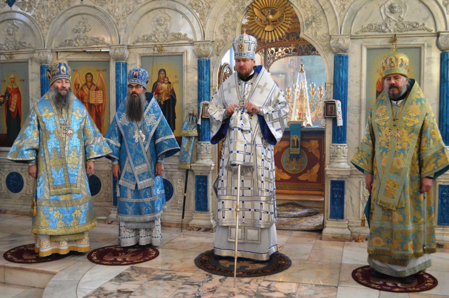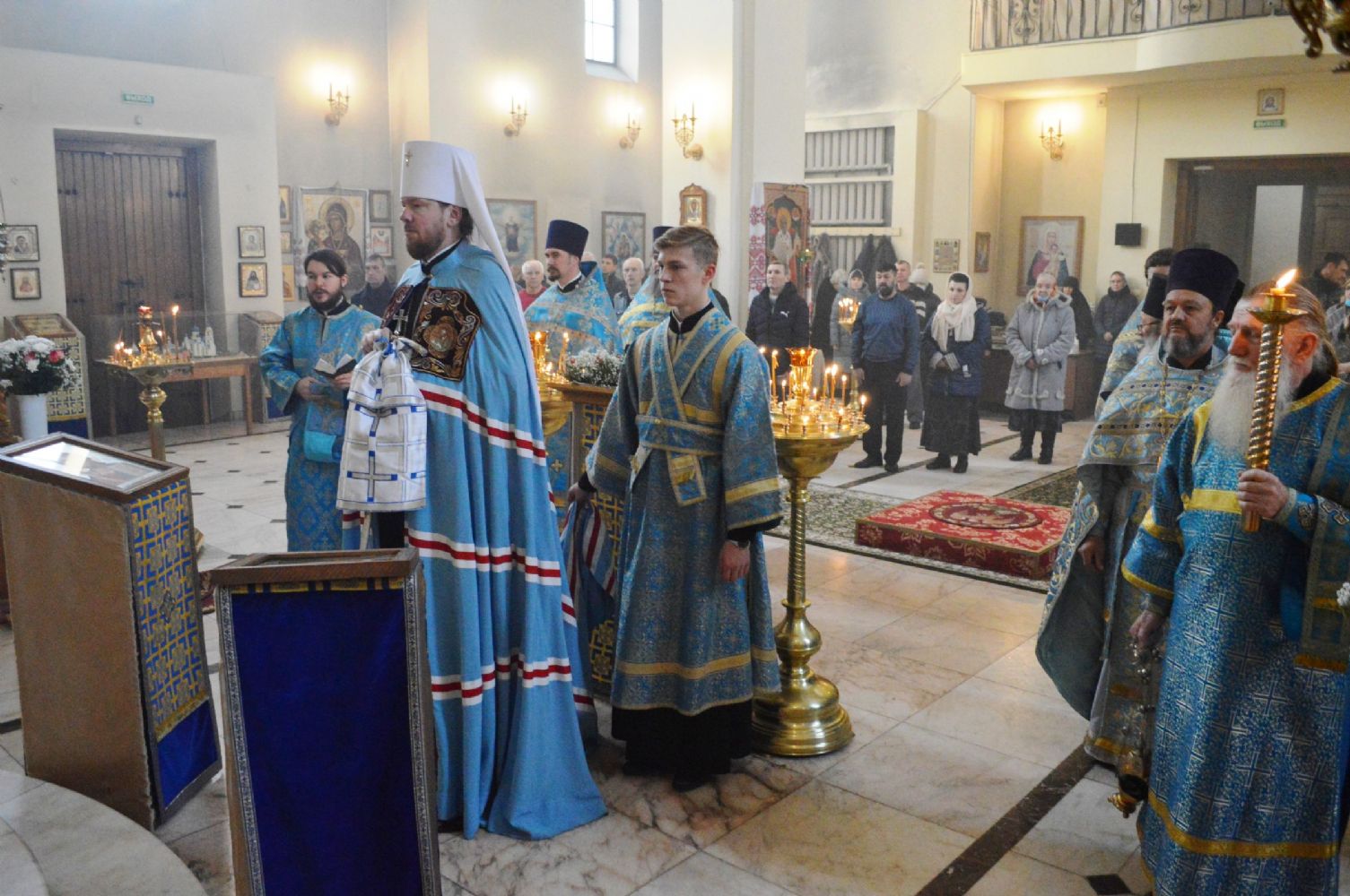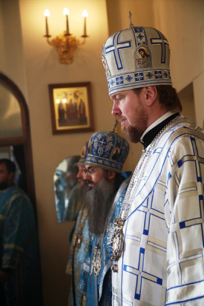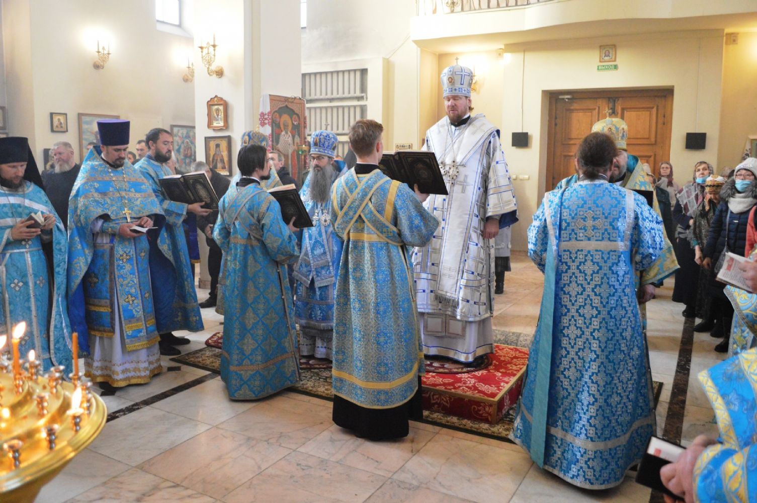 Архиереям сослужили ключарь собора иерей Александр Ступа, протоиерей Николай Хоменко, иерей Димитрий Овчинников, иерей Андрей Васякин, иеромонах Варсонофий (Рыжов), иерей Михаил Котенко, иерей Владимир Пыжиков.