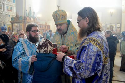По завершении богослужения епископ Гурий поблагодарил митрополита Владимира за архипастырский визит и поздравил с праздником Введения во храм Пресвятой Богородицы.