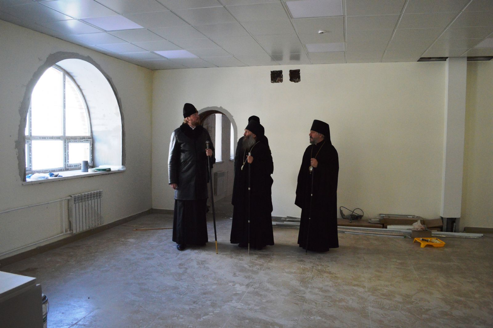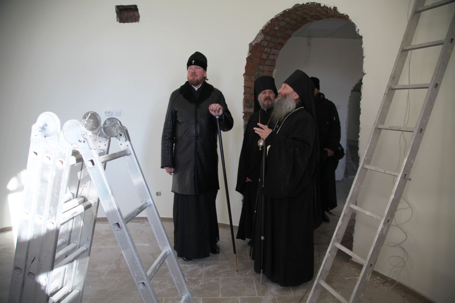 Митрополит Владимир ознакомился с ходом строительных работ, оценил планировку и расположение будущих классов и кабинетов.