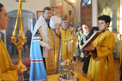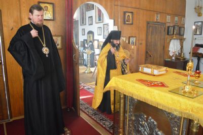 Его Высокопреосвященству сослужили иеромонах Иннокентий (Корчага) и иерей Игорь Спицын.