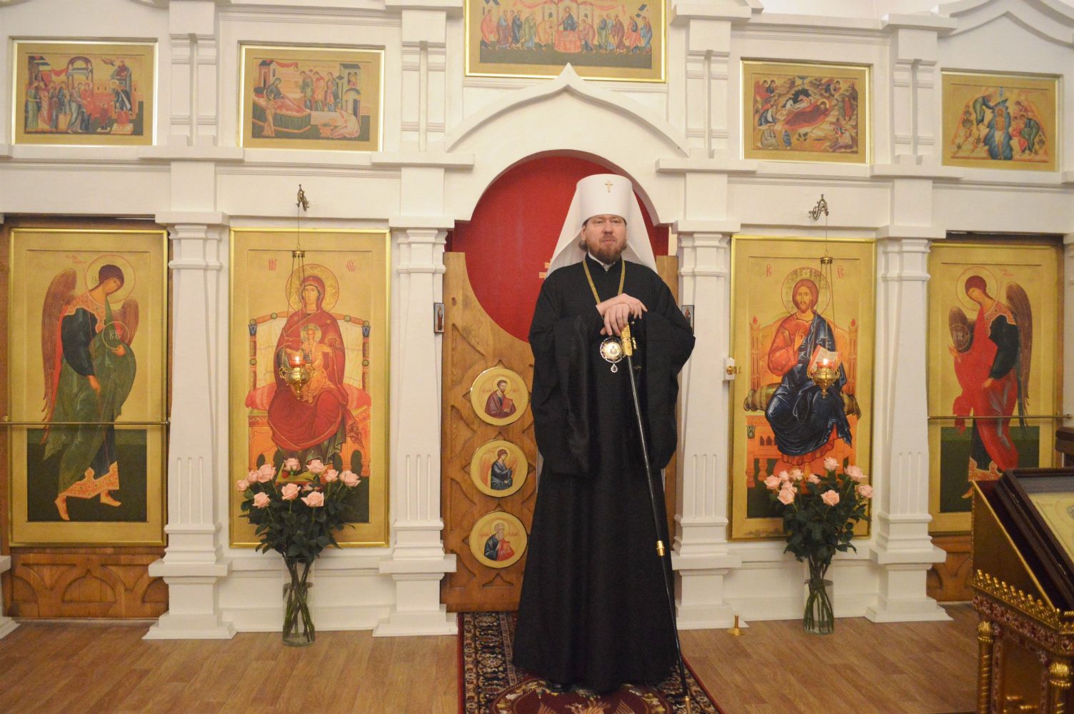 От имени насельниц обители настоятельница монастыря игумения Мария (Пономарева) поблагодарила владыку Владимира за архипастырский визит и преподнесла ему букет цветов.