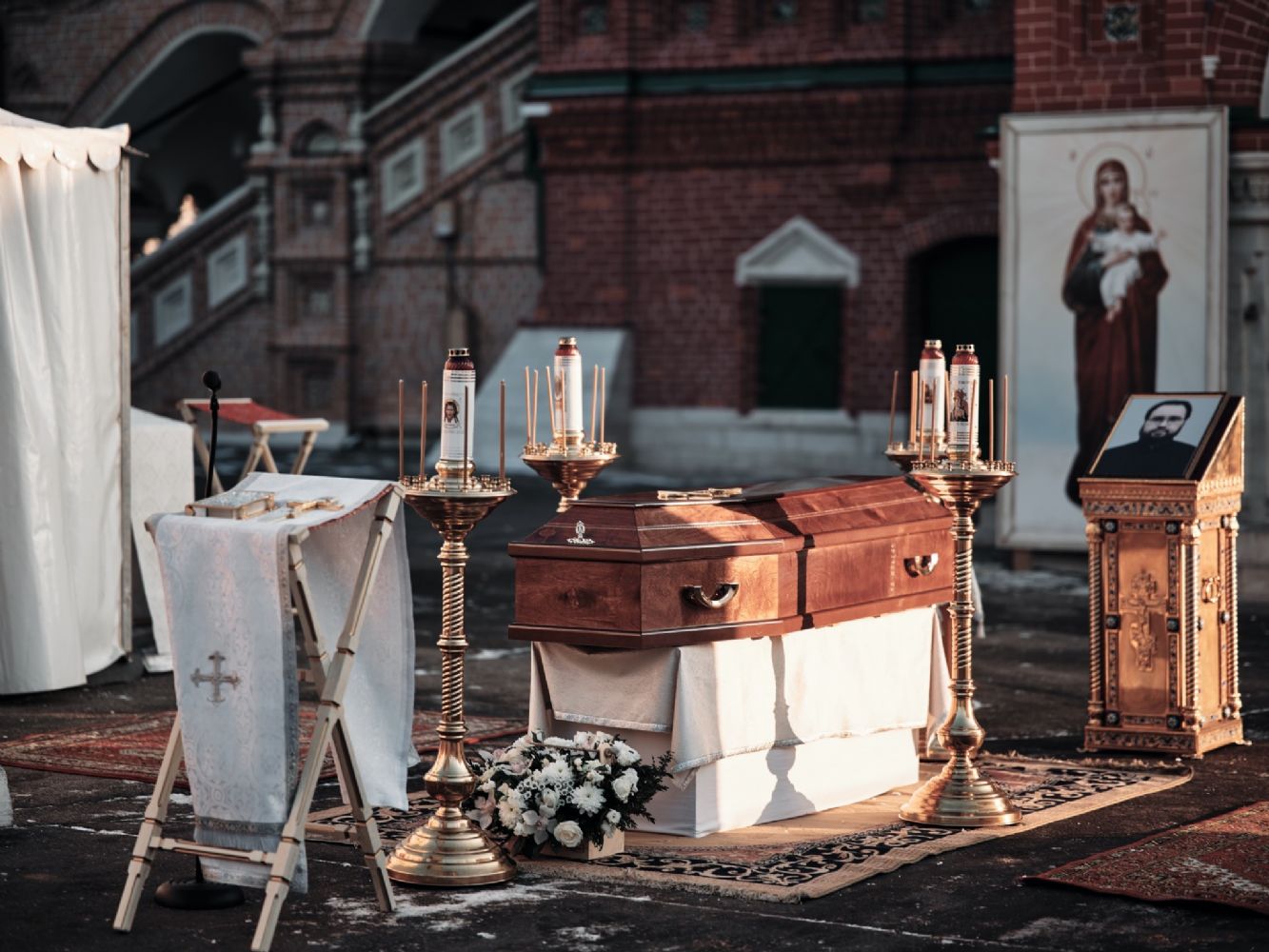 После отпевания гроб был обнесен вокруг храма, где почивший нес служение Господу.