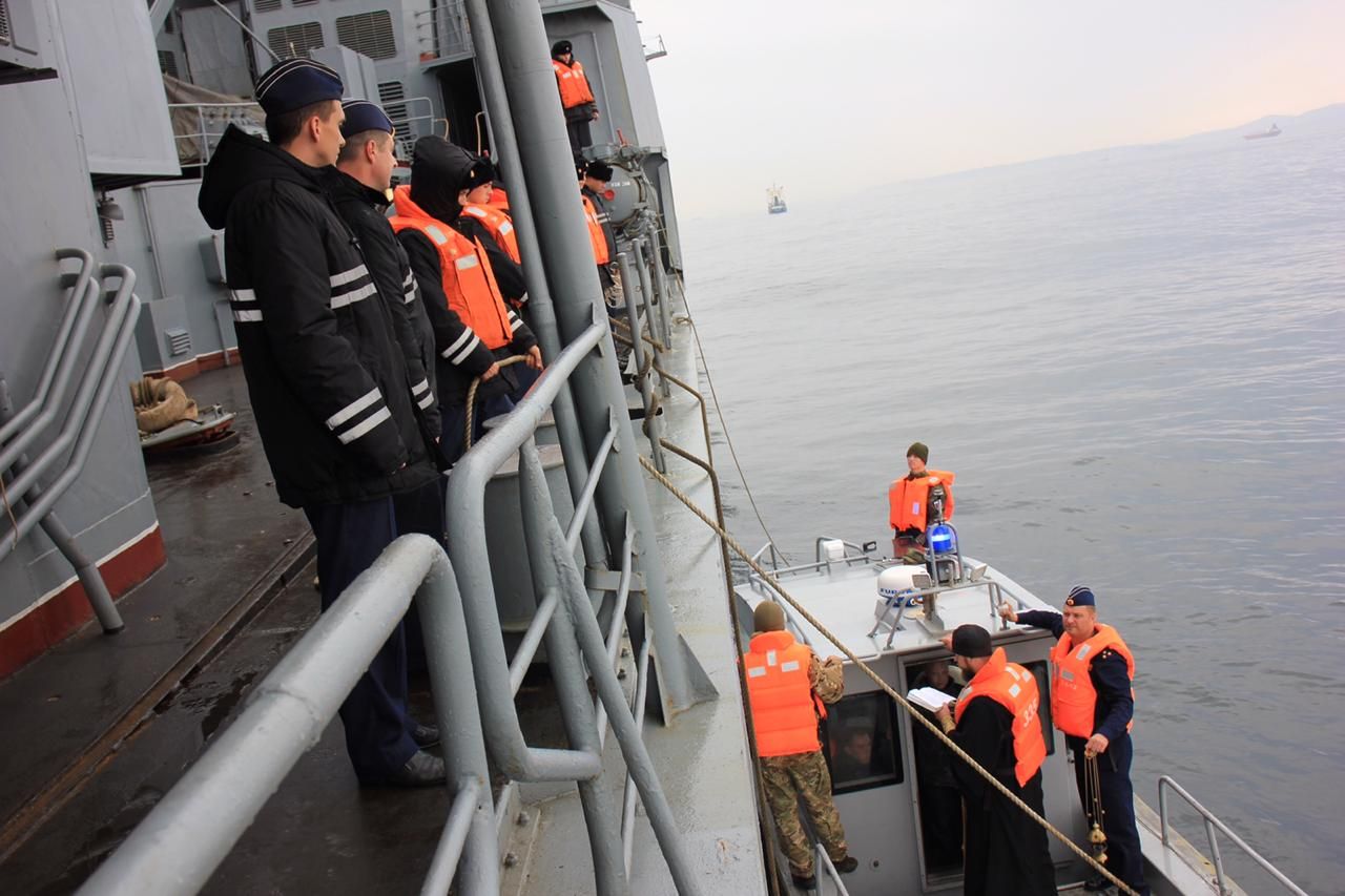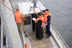 Владивосток. Молебеное пение с личным составом экипажа кораблей убывающих для военных задач боевой службы в Уссурийском заливе совершил иерей Даниил Есаков.