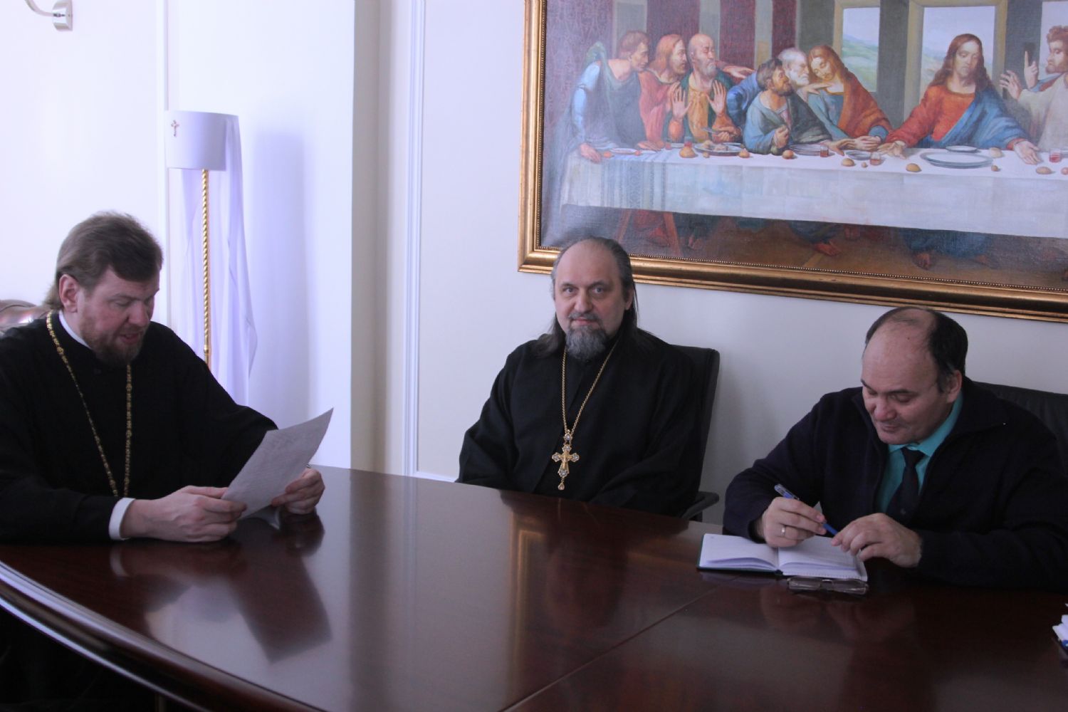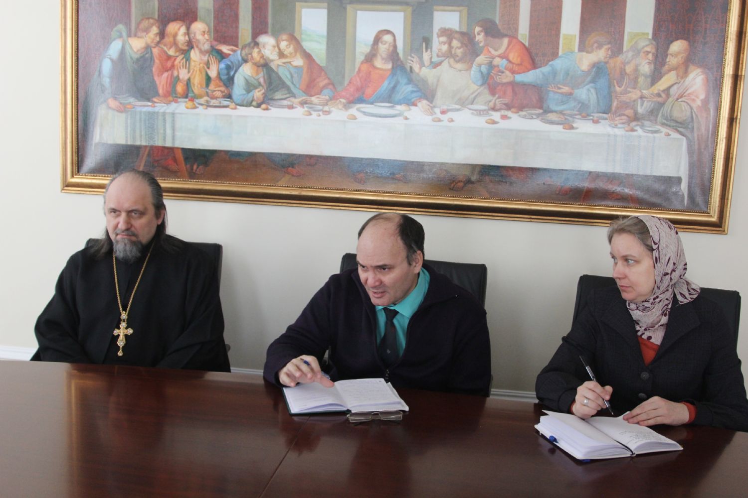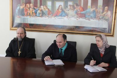 В заседании приняли участие епископ Уссурийский Иннокентий, викарий Владивостокской епархии; руководитель отдела религиозного образования и катехизации Владивостокской епархии протоиерей Ростислав Мороз; директор Православной гимназии города Владивостока Лидия Титова; заместитель директора по воспитательной работе Православной гимназии Александр Горбатько.
