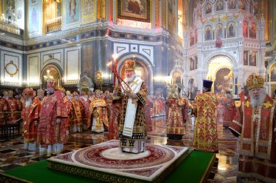 В завершение Святейший Патриарх Московский и всея Руси Кирилл напутствовал всех участников богослужения: «Еще раз всех поздравляю с праздником, благодарю за молитвы и призываю всех нас в единстве, в единомыслии, с максимальным напряжением духовных, а подчас и физических сил продолжать то служение, от которого сегодня, как уже было сказано, зависит, может быть, судьба нашего народа и нашей Церкви. На вызовы непростого времени мы должны отвечать удвоенными силами, направленными на то, чтобы укреплялась вера православная и единство нашего народа. Еще раз всех вас поздравляю с праздником. Христос Воскресе!»