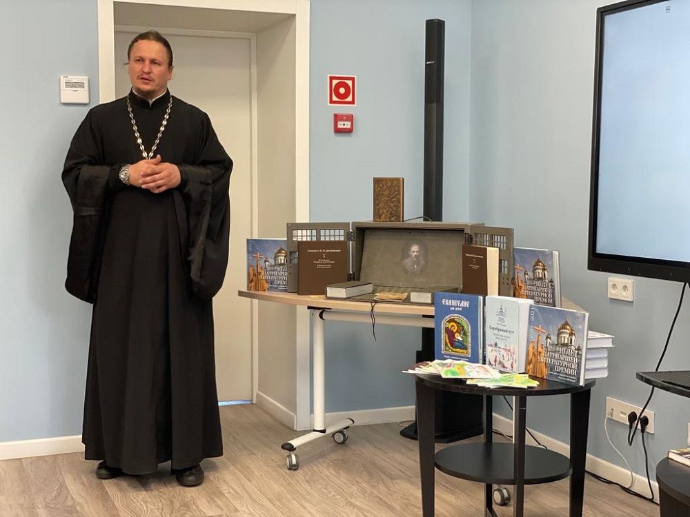 Перед началом мероприятия иерей Дионисий Гордеев, клирик храма Казанской иконы Божией Матери старший преподаватель кафедры теологии ШИГН ДВФУ выступил с приветственным словом. Затем семинар провел заместитель председателя Издательского Совета Русской Православной Церкви иеромонах Макарий (Комогоров). Ведущий рассказал о проектах Издательского Совета, показал презентацию Патриаршей Литературной премии святых равноапостольных Кирилла и Мефодия, представил уникальный издательский проект Евангелия Достоевского.