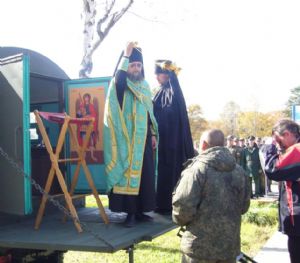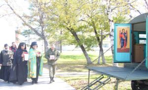 Чин освящения воинской мобильной часовни совершил наместник Свято-Троицкого Николаевского монастыря