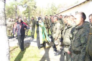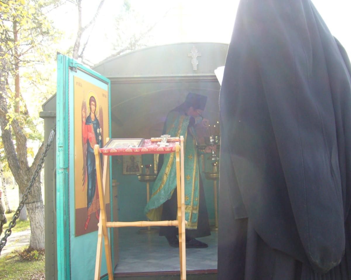 За богослужением молились насельники обители, командир и личный состав 25 полка радиационной, химической и биологической защиты.