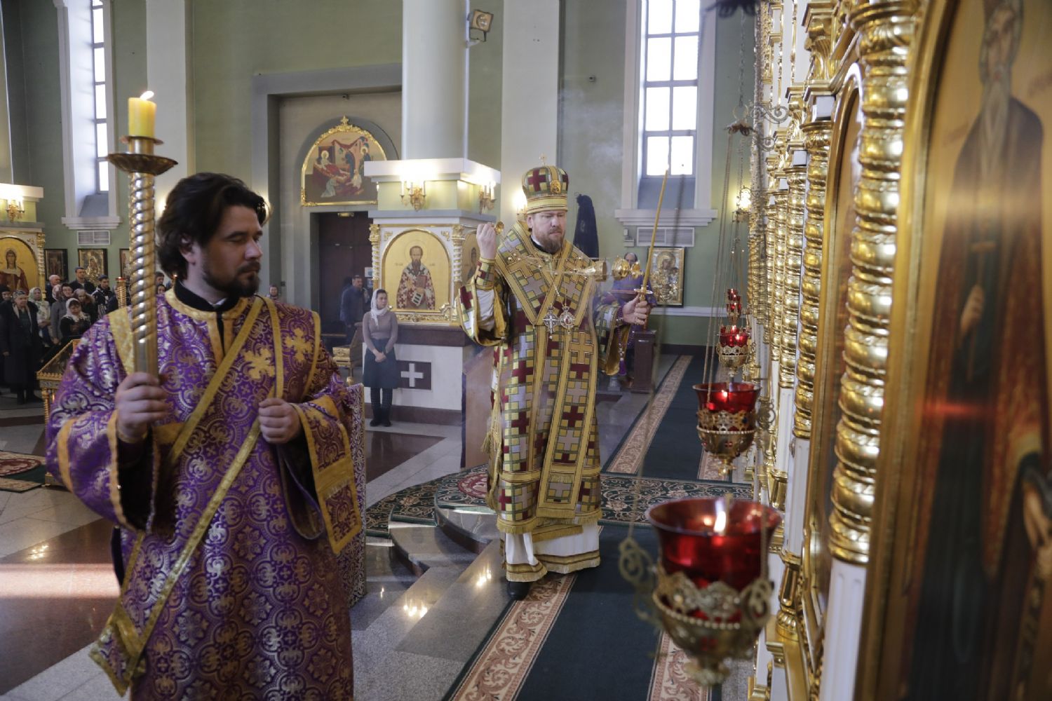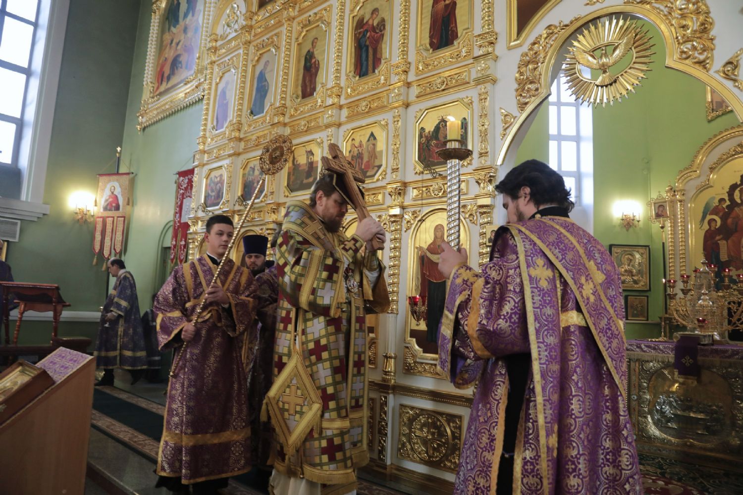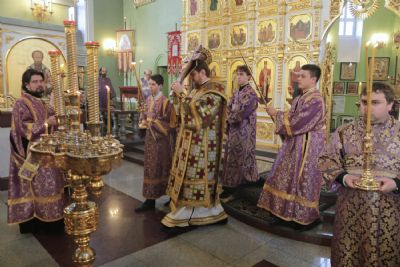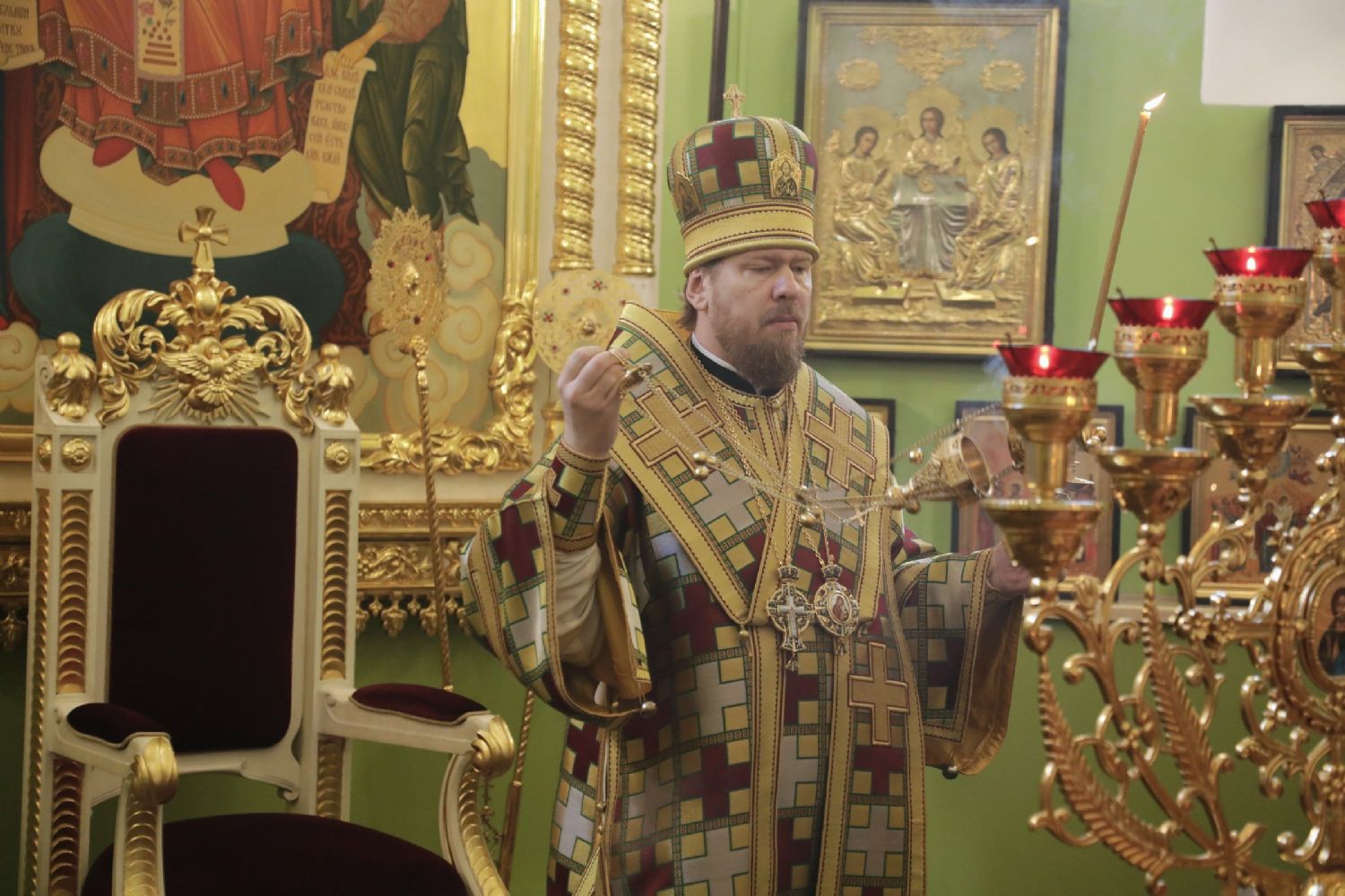 Его Высокопреосвященству сослужили: ключарь Покровского собора иерей Владимир Плотников, игумен Антоний (Каменчук), протоиерей Игорь Шевчук, иерей Максим Точуков, иерей Виктор Архипов.