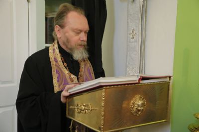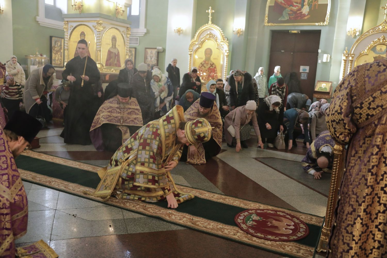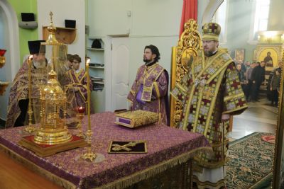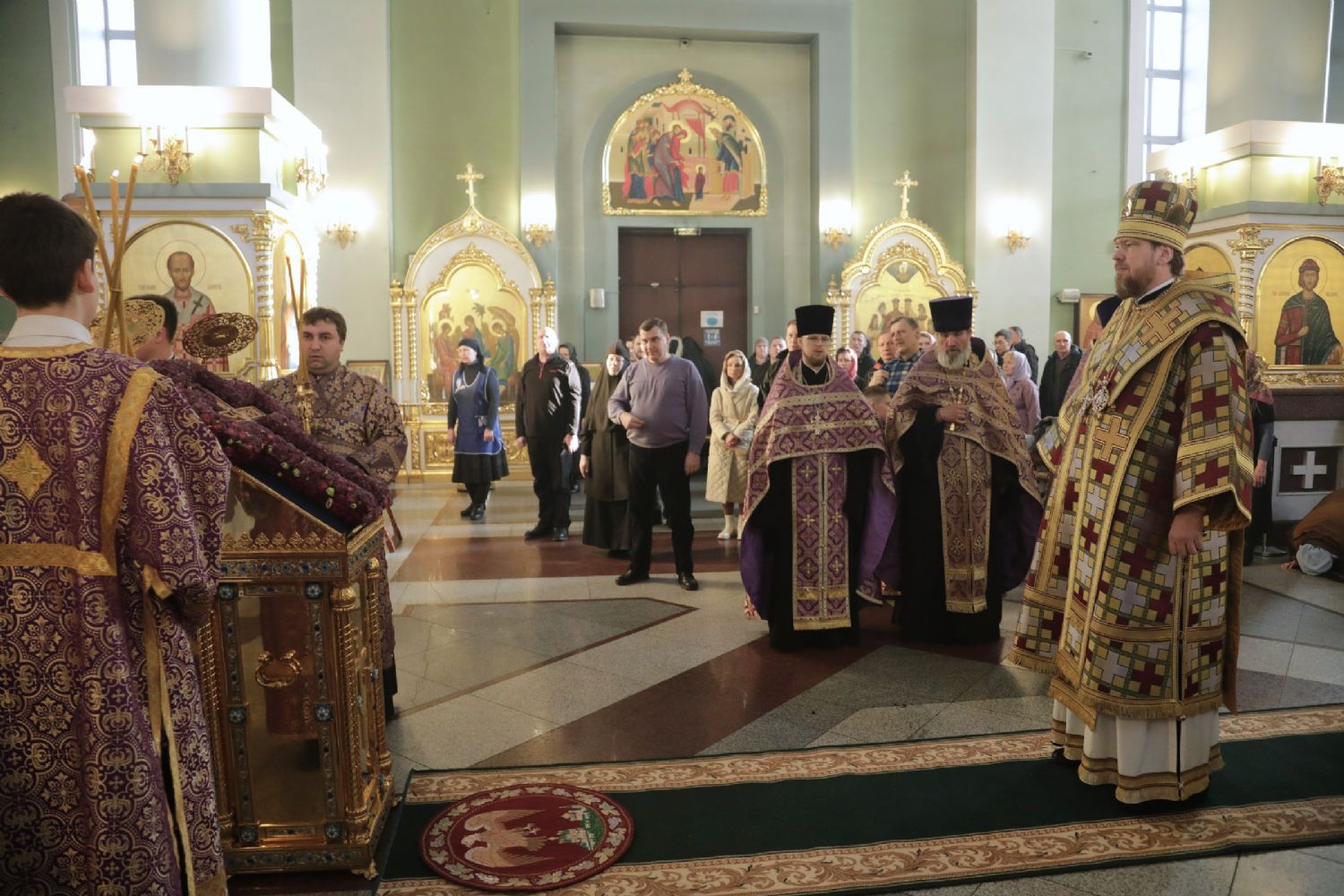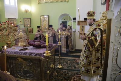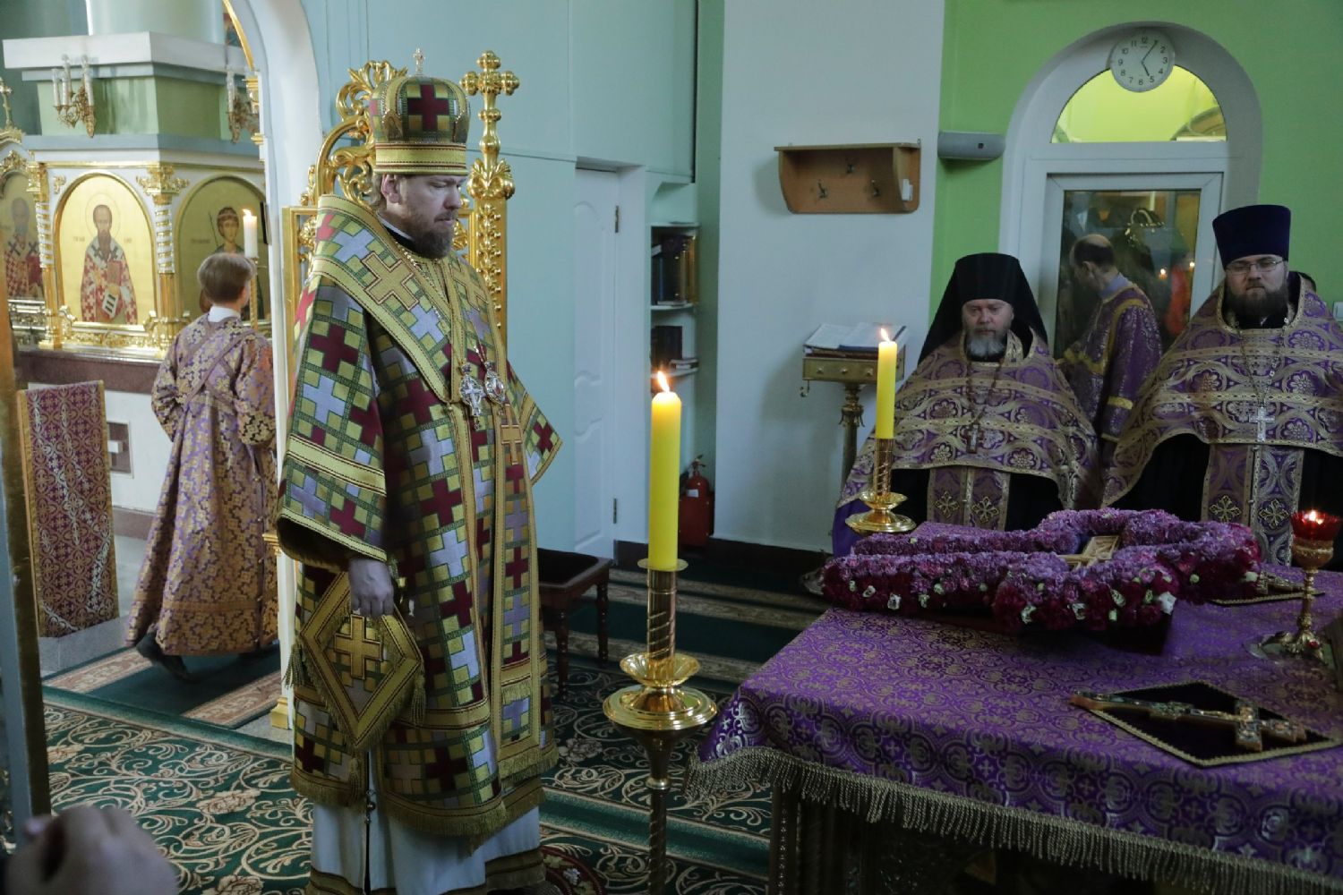Его Высокопреосвященству сослужили: ключарь Покровского собора иерей Владимир Плотников, игумен Антоний (Каменчук), протоиерей Игорь Шевчук, иерей Максим Точуков, иерей Виктор Архипов.