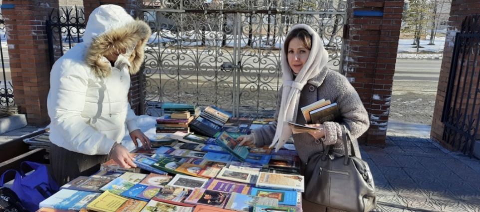 В воскресенье 19 марта в 13:00 в библиотеке Свято-Серафимовского мужского монастыря о. Русский состоялась акция по раздаче книг и икон. Акция была приурочена к празднованию Дня православной книги.