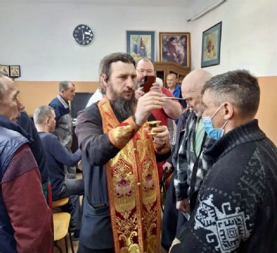 На Светлой Седмице настоятель храма Живоначальной Троицы п. Врангель, иерей Иоанн Гречишников и клирик кафедрального иеромонах Ермоген Крещенко навестили постояльцев приюта для бездомных «Возвращение».