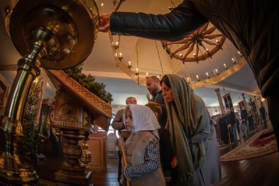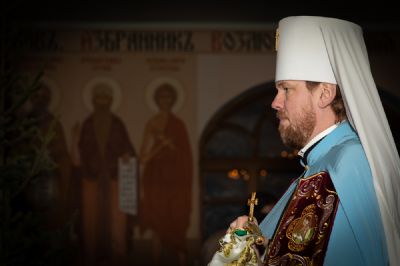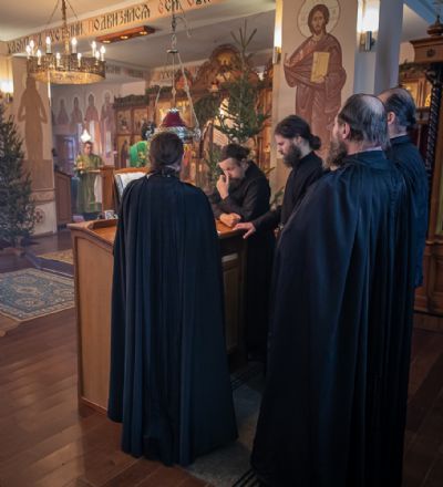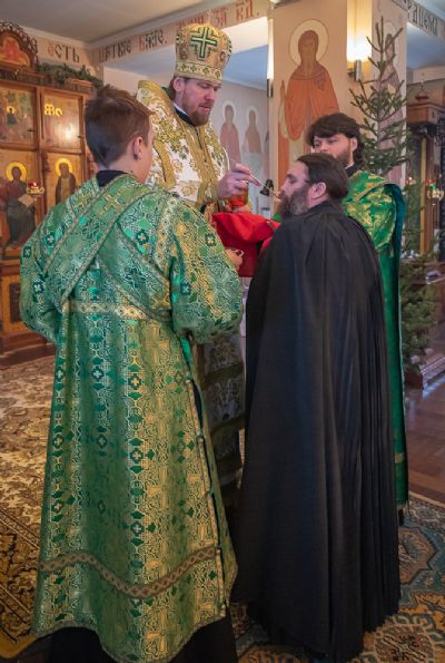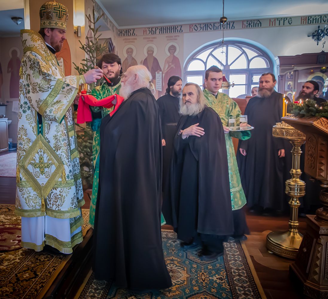 Митрополит Владимир также поздравил настоятеля, братию монастыря, прихожан и паломников с престольным праздником обители, причастников — с принятием Святых Христовых Таин, преподал благословение и вручил детям небольшие сладкие подарки.