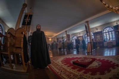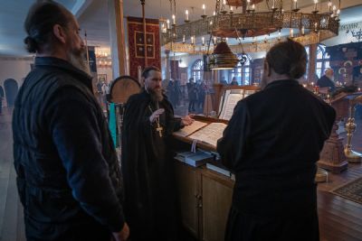 Богослужебные песнопения исполнил хор братии монастыря под управлением наместника игумена Климента (Кривоносова).