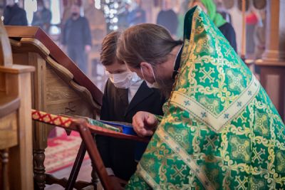 На сугубой ектении были вознесены молитвенные прошения в связи с угрозой распространения коронавирусной инфекции.