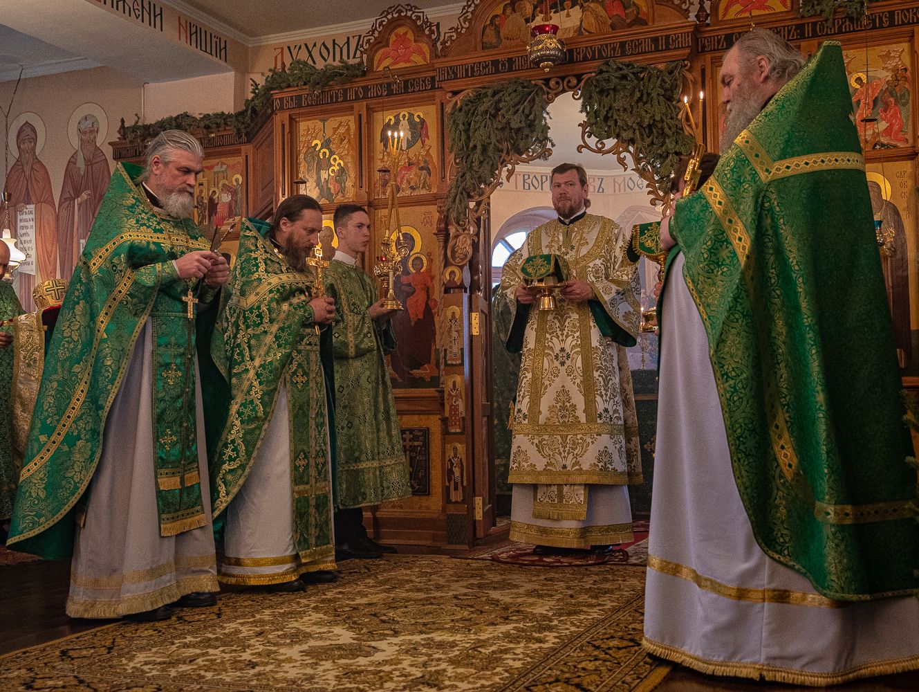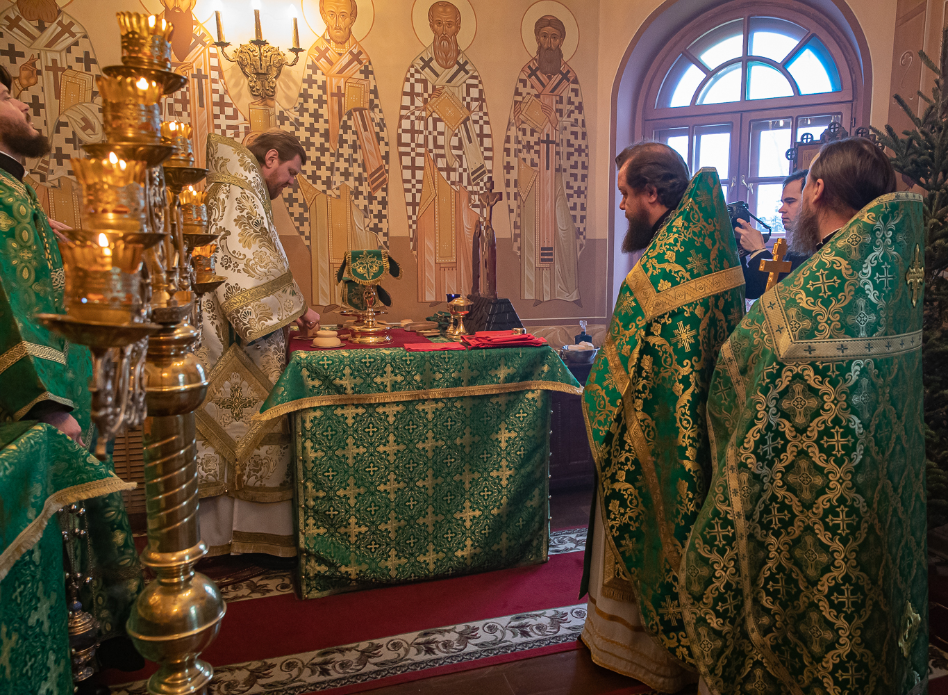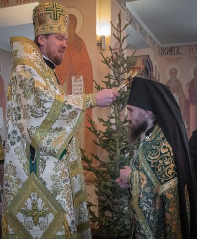 Его Высокопреосвященству сослужили благочинный II Владивостокского благочиния, ключарь Покровского собора иеромонах Иоанн (Костин); настоятель храма Порт-Артурской иконы Божией Матери города Владивостока протоиерей Андрей Метелев, настоятель храма святых апостолов Петра и Павла поселка Трудовое иеромонах Кирилл (Корниенко), иеромонах Серафим (Добрицкий).