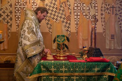 После сугубой ектении глава Приморской митрополии вознес молитвы ко Господу о завершении строительства Спасо-Преображенского кафедрального собора г. Владивостока и молитву во время распространения вредоносного поветрия чтомую.
