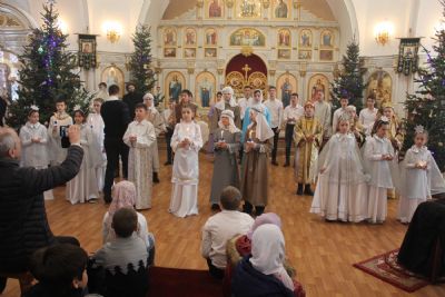 По окончании богослужения состоялось выступление воспитанников воскресной школы храма, которые прочитали стихи и пропели песнопения.