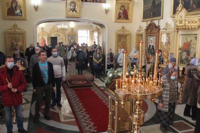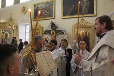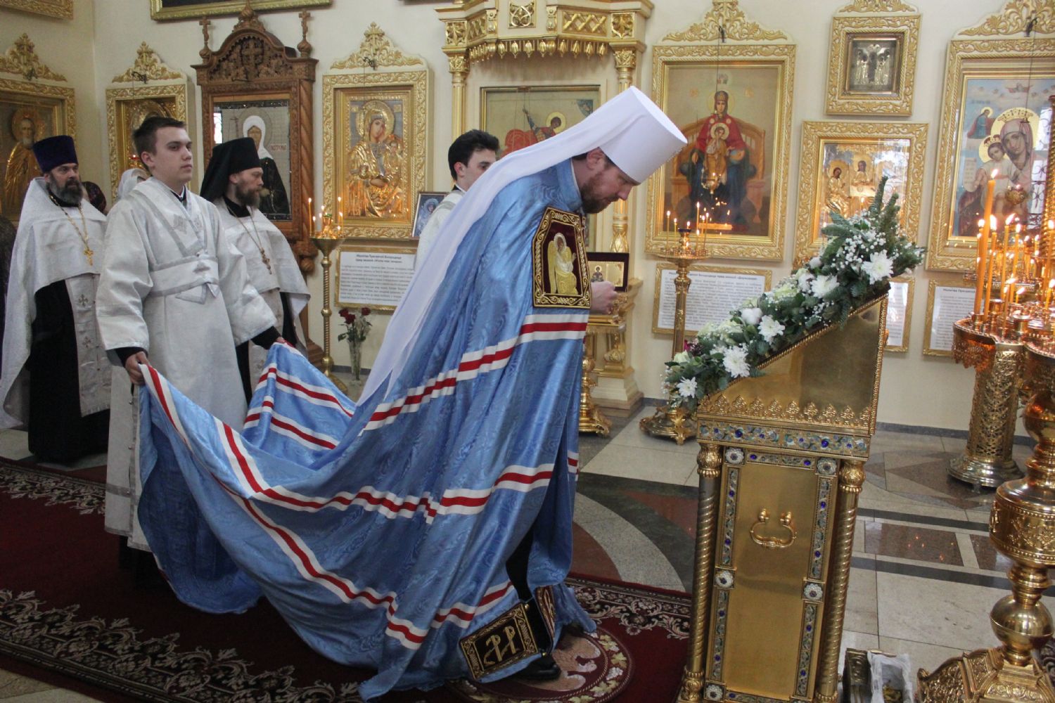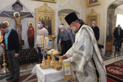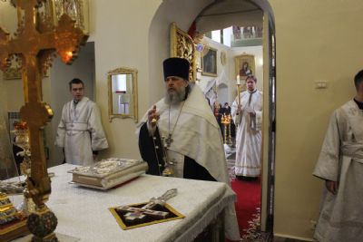 Его Высокопреосвященству сослужили ключарь собора протоиерей Александр Талько, игумен Алексий (Несмеев), иерей Александр Жилин, иерей Николай Манукян, иерей Сергий Зверев.