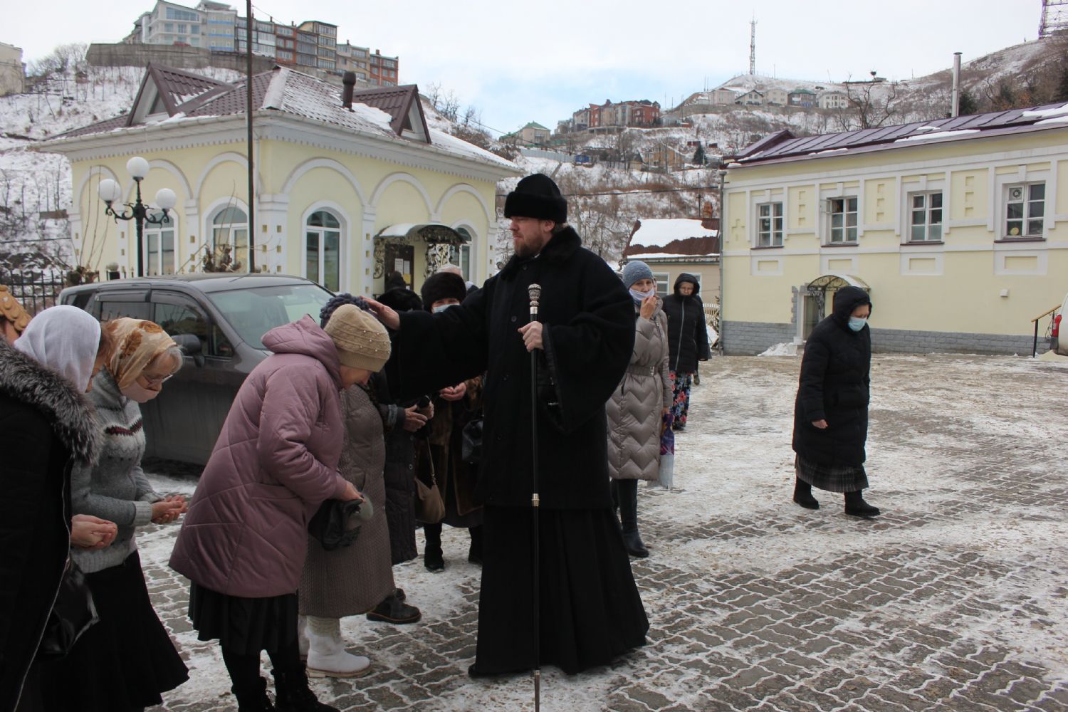 Владивосток . Вечером 31 декабря викарий Владивостокской епархии епископ Уссурийский Иннокентий совершил в храме Успения Божией Матери молебен на начало нового гражданского 2022 года. Ему сослужили прот. Димитрий Федорин, диакон Анатолий Кулик,