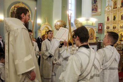Богослужебные песнопения исполнил Митрополичий хор Покровского кафедрального собора под управлением под управлением регента Елены Левада.