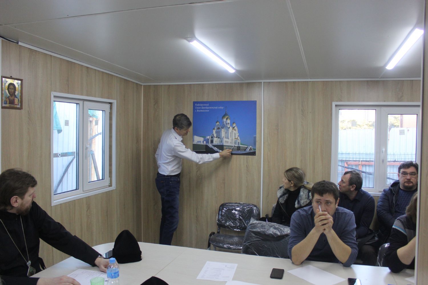 В совещании приняли участие секретарь Владивостокской епархии, ответственный за строительство Спасо-Преображенского кафедрального собора протоиерей Игорь Талько; настоятель Свято-Серафимовского мужского монастыря игумен Климент (Кривоносов); руководитель генеральной подрядной организации по строительству собора ООО «СМУ 882» Максим Яковлев; архитектор-дизайнер, член епархиальной рабочей группы по строительству собора Галина Якушкина; руководитель ООО «Ремонтно-строительная компания КФК» Владимир Каспин; главный инженер ООО «Ремонтно-строительная компания КФК» Эдуард Васильев; руководитель ООО «Золотой Дракон Торгово-Инженерная Компания» Константин Тарабанько; генеральный директор ООО «КБ СТОУН» Кирилл Соколов; директор ООО «РИТЦ» Юрий Горбатенко.