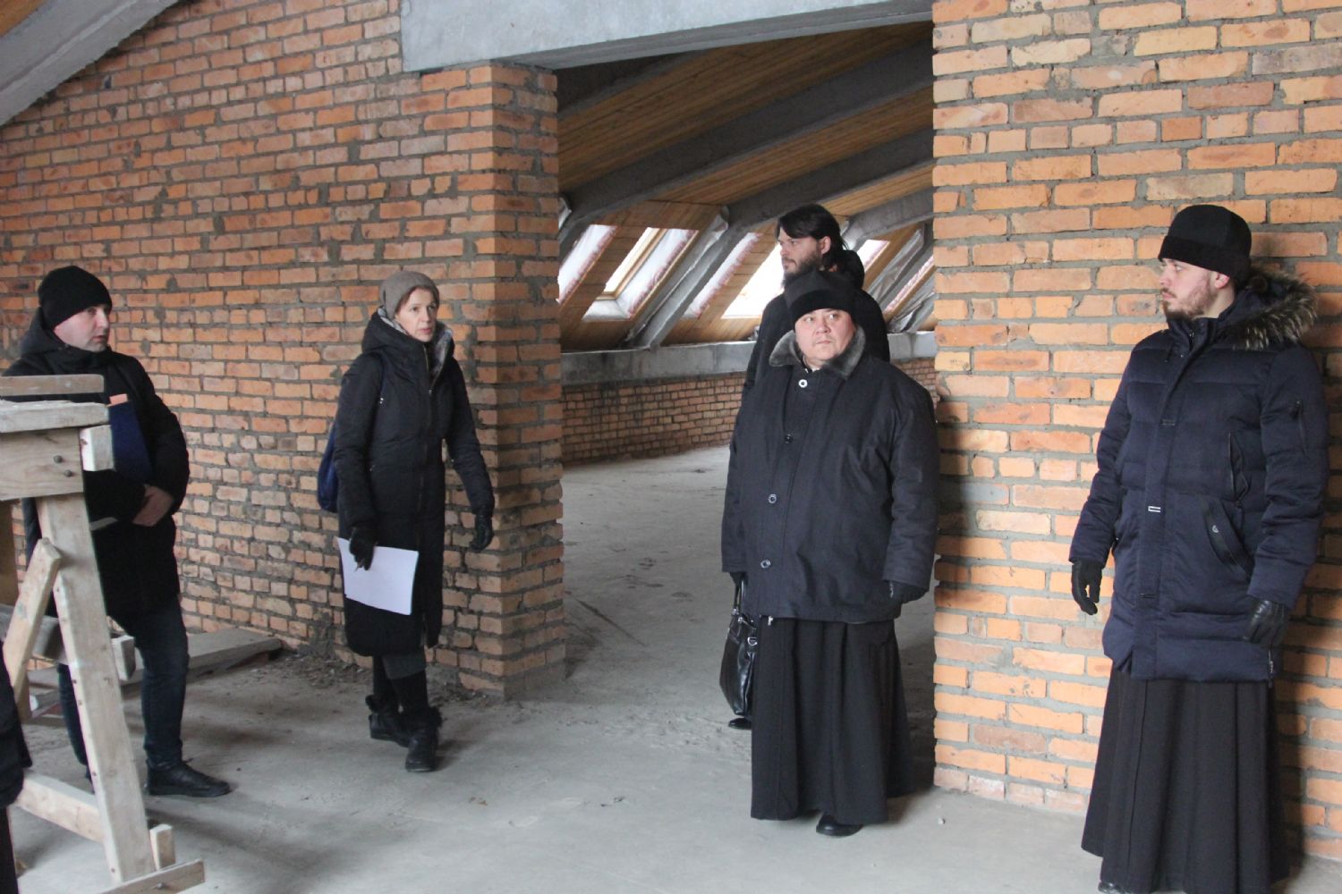 Участники совещания обсудили проект строящегося причтового дома: какие изменения за время строительства он претерпел, какие корректировки следует внести в него на данный момент. Была определена стратегия дальнейших действий по проектированию, проработке планировки здания, которая будет соответствовать целевому назначению и при этом отвечать требованиям и нормам в области строительства.