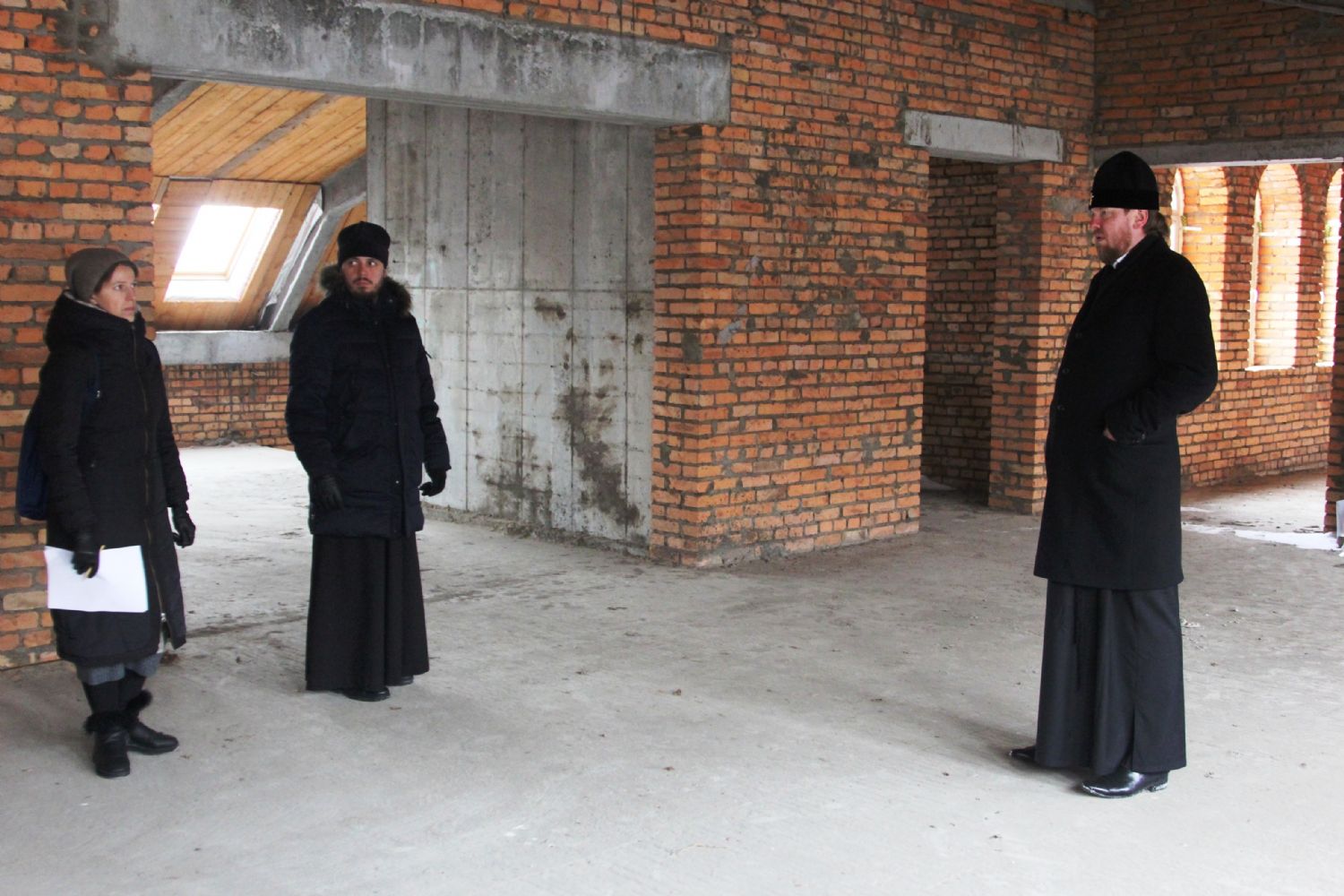 В ходе посещения строительной площадки митрополит Владимир внес предложения по изменению и дополнению эскизов планировки здания.