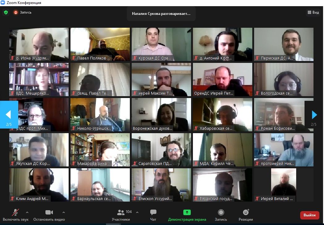 Владивосток-Москва. III Семинар сообщества преподавателей и исследователей Истории Русской Церкви состоялся 23-24 марта в дистанционном формате.В его работе участвовали со стороны Владивостокской епархии: епископ Уссурийский Иннокентий, к.ист. н., директор Центра подготовки церковных специалистов, доцент кафедры теологии ШИГН ДВФУ, иерей Дионисий Гордеев, преподаватель ЦПЦС и кафедры теологии ШИГН ДВФУ, прот. Игорь Шевчук, преподаватель ЦПЦС, Солоненко Л. В., к. ф. н., ученый секретарь Духовного центра. В целом на семинаре присутствовало 115 представителей 52 учебных заведений, в том числе теологических подразделений государственных вузов России, были представлены 40 духовных академий и семинарий России.