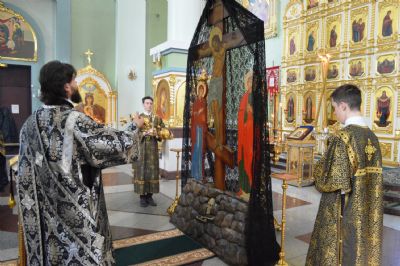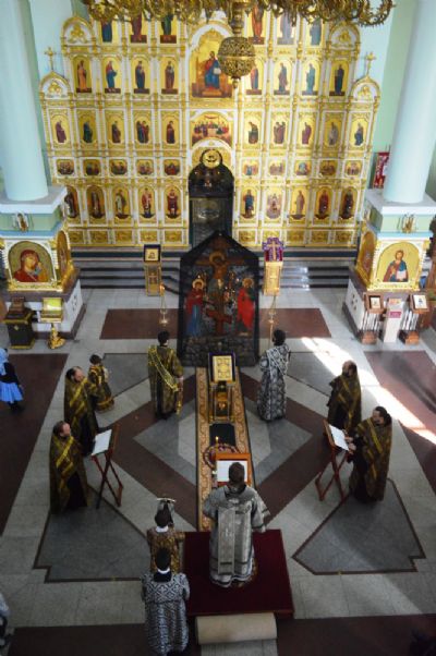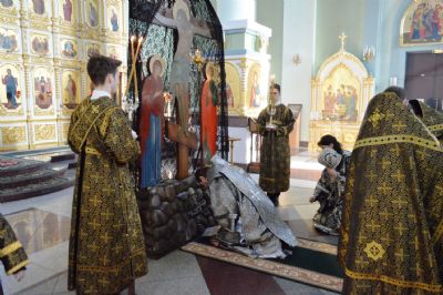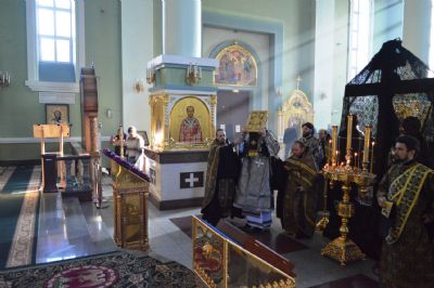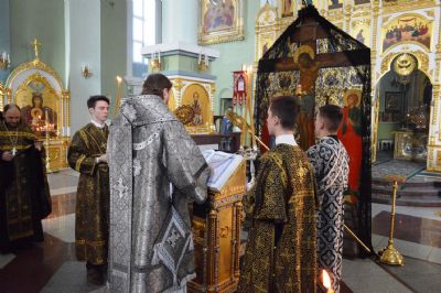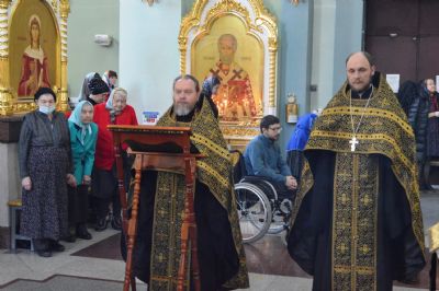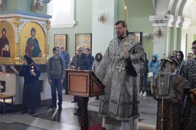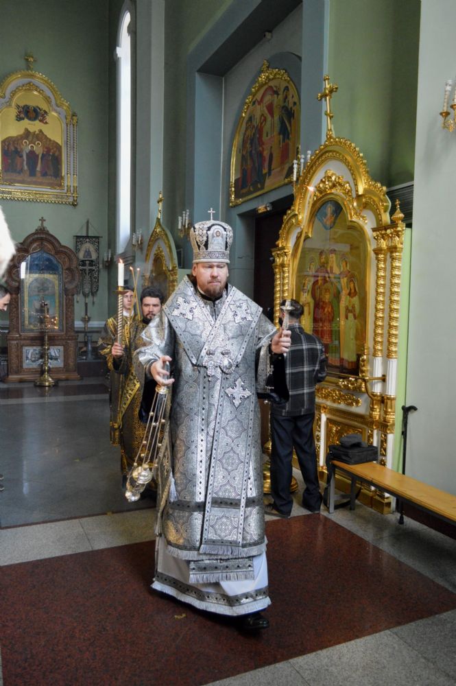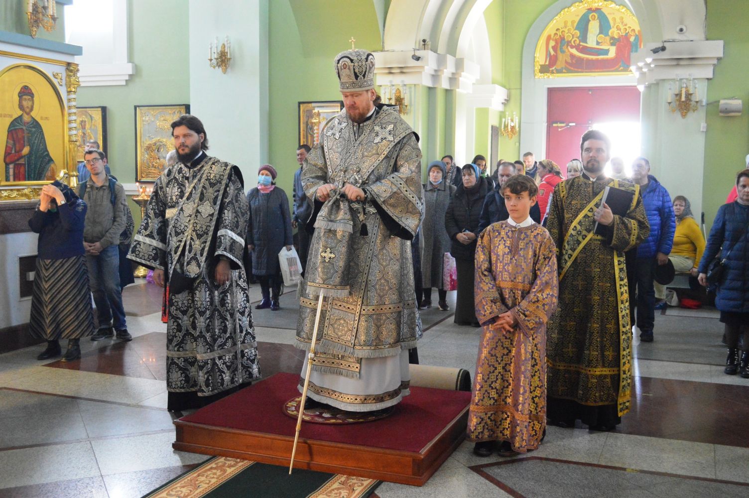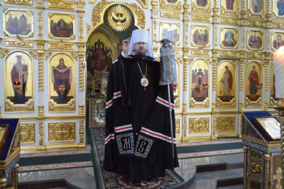 Его Высокопреосвященству сослужили: исполняющий обязанности ключаря Покровского собора иерей Владимир Плотников, игумен Антоний (Каменчук), иерей Максим Точуков, иерей Дионисий Ищенко.