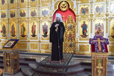 По окончании богослужения митрополит Владимир обратился к верующим с архипастырским словом и преподал благословение.